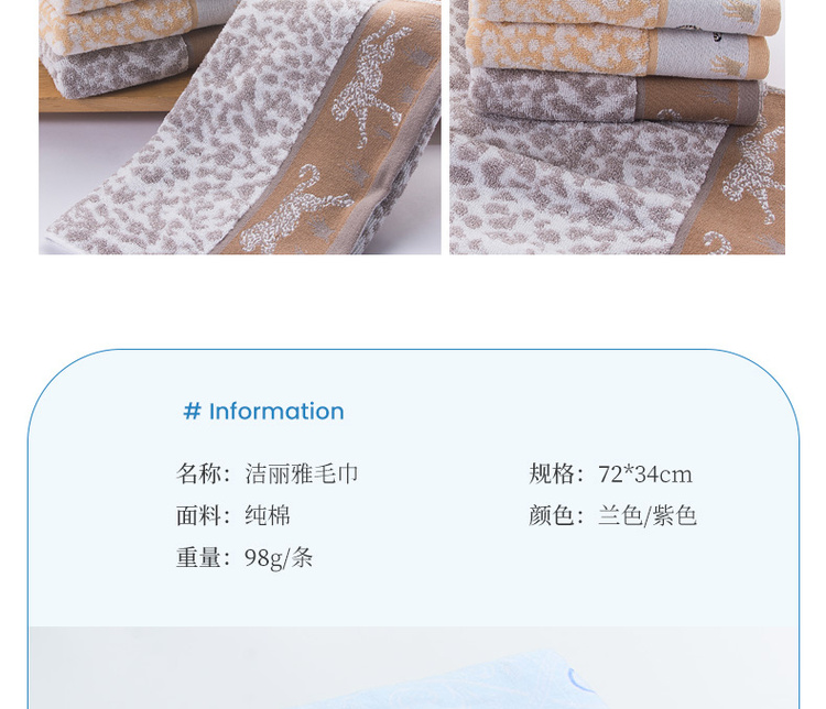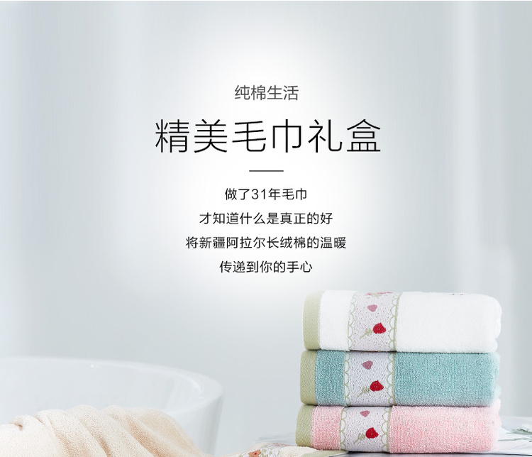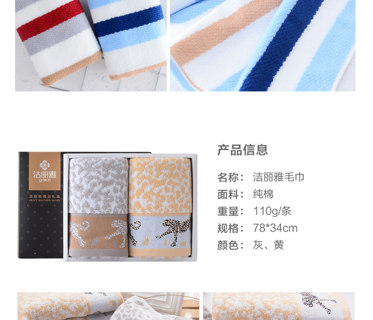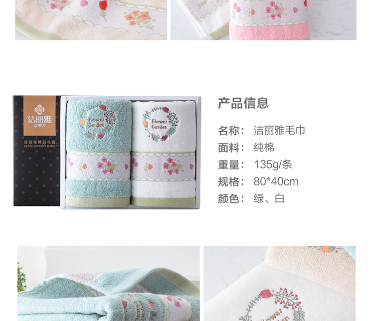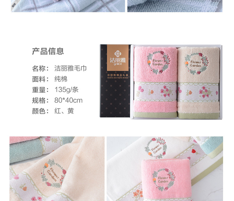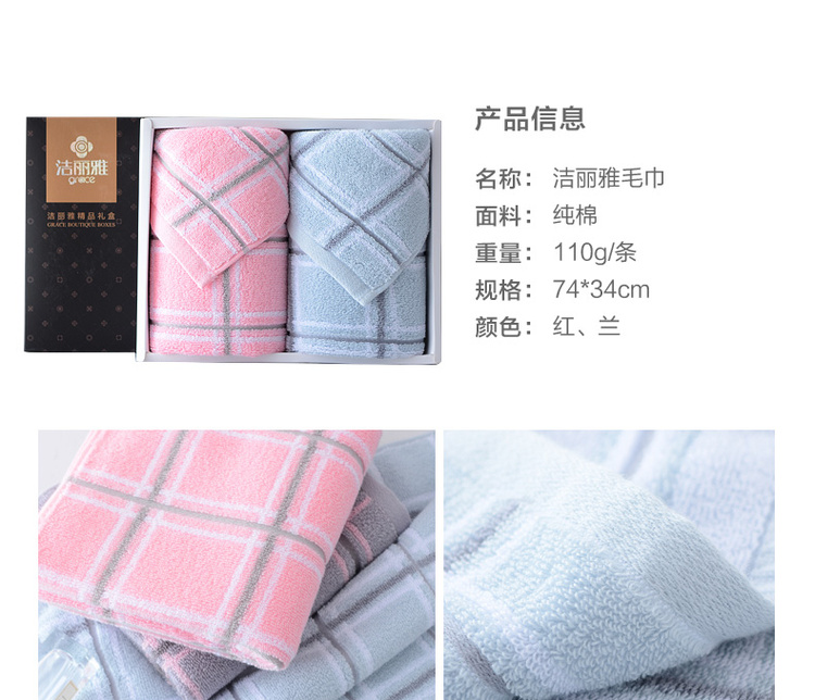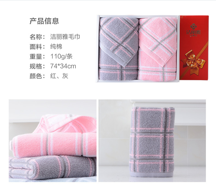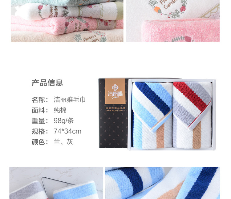 洁丽雅纯棉毛巾 舒适全棉加大加厚吸水柔软洁洗脸面巾 两条礼盒装#官方正品