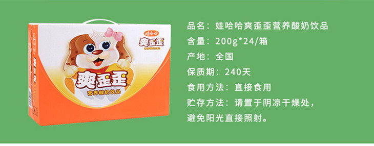 娃哈哈 爽歪歪酸奶饮品 200g*24瓶 整箱 益生菌 发酵饮料