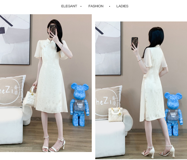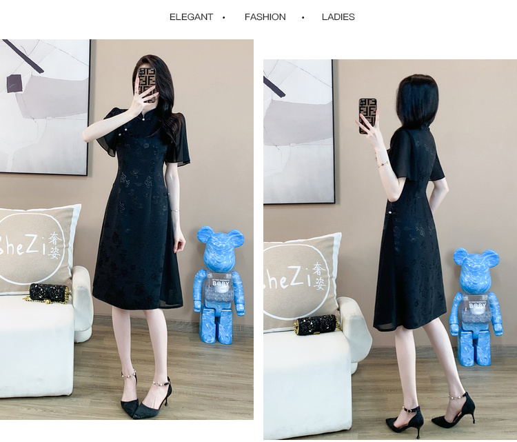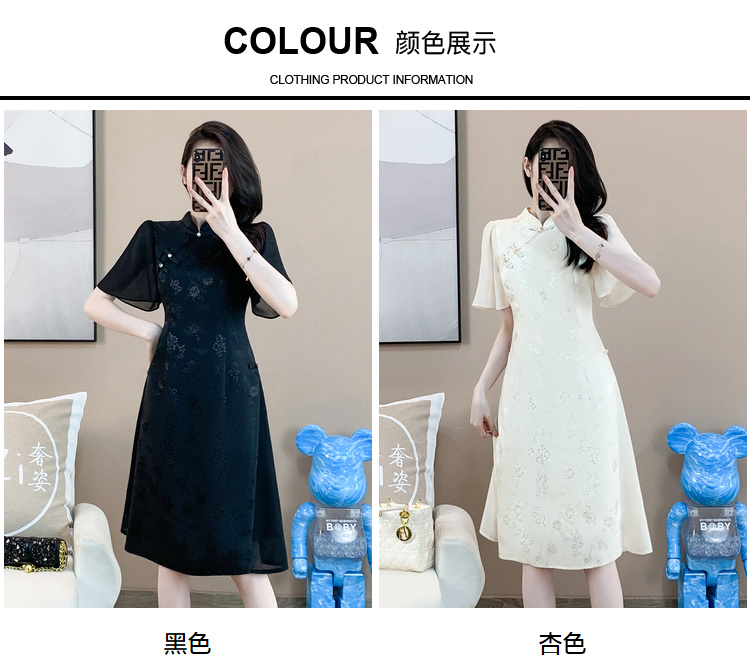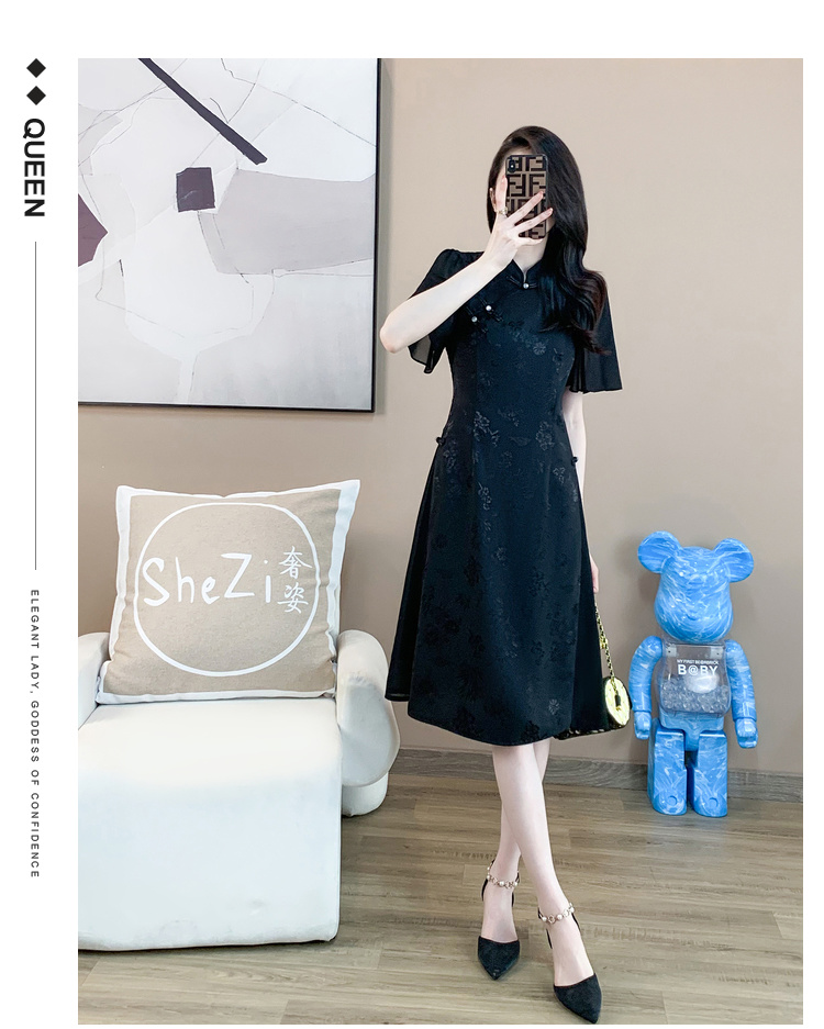 奢姿大码女装2026夏季胖妹妹时尚提花改良旗袍气质复古国风裙子9962894494
