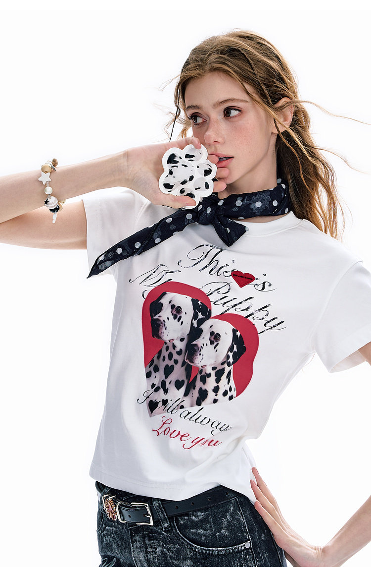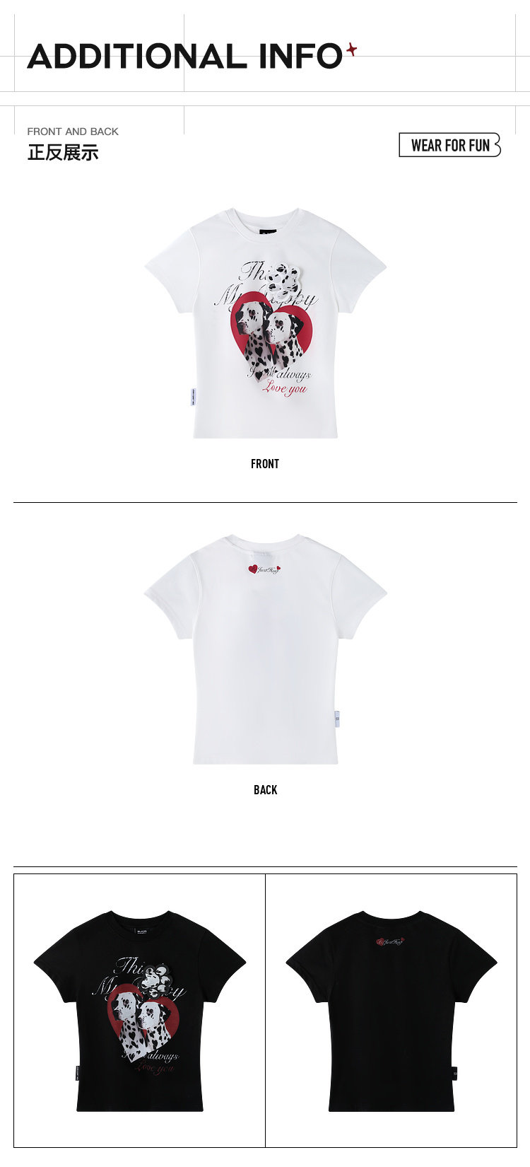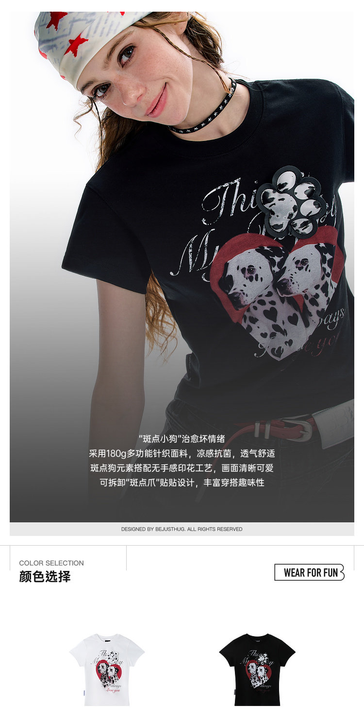 BJHG不计后果 不宠系列短袖t恤女夏季凉感速干斑点狗印花修身上衣
