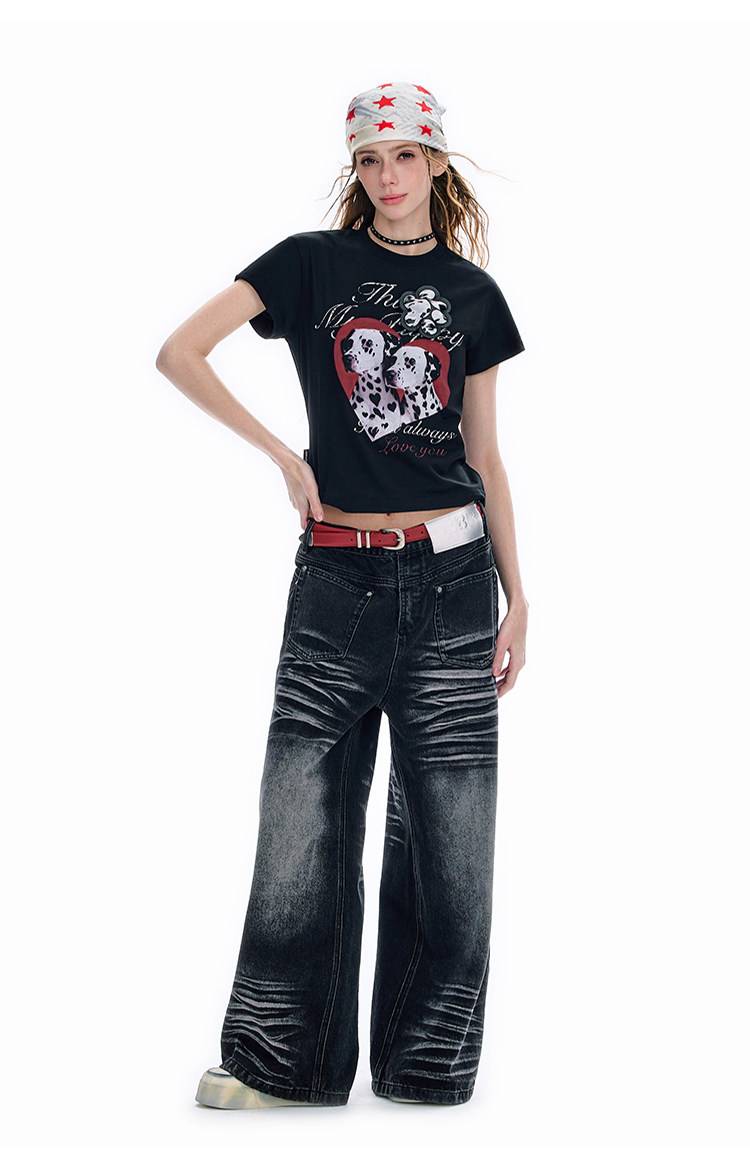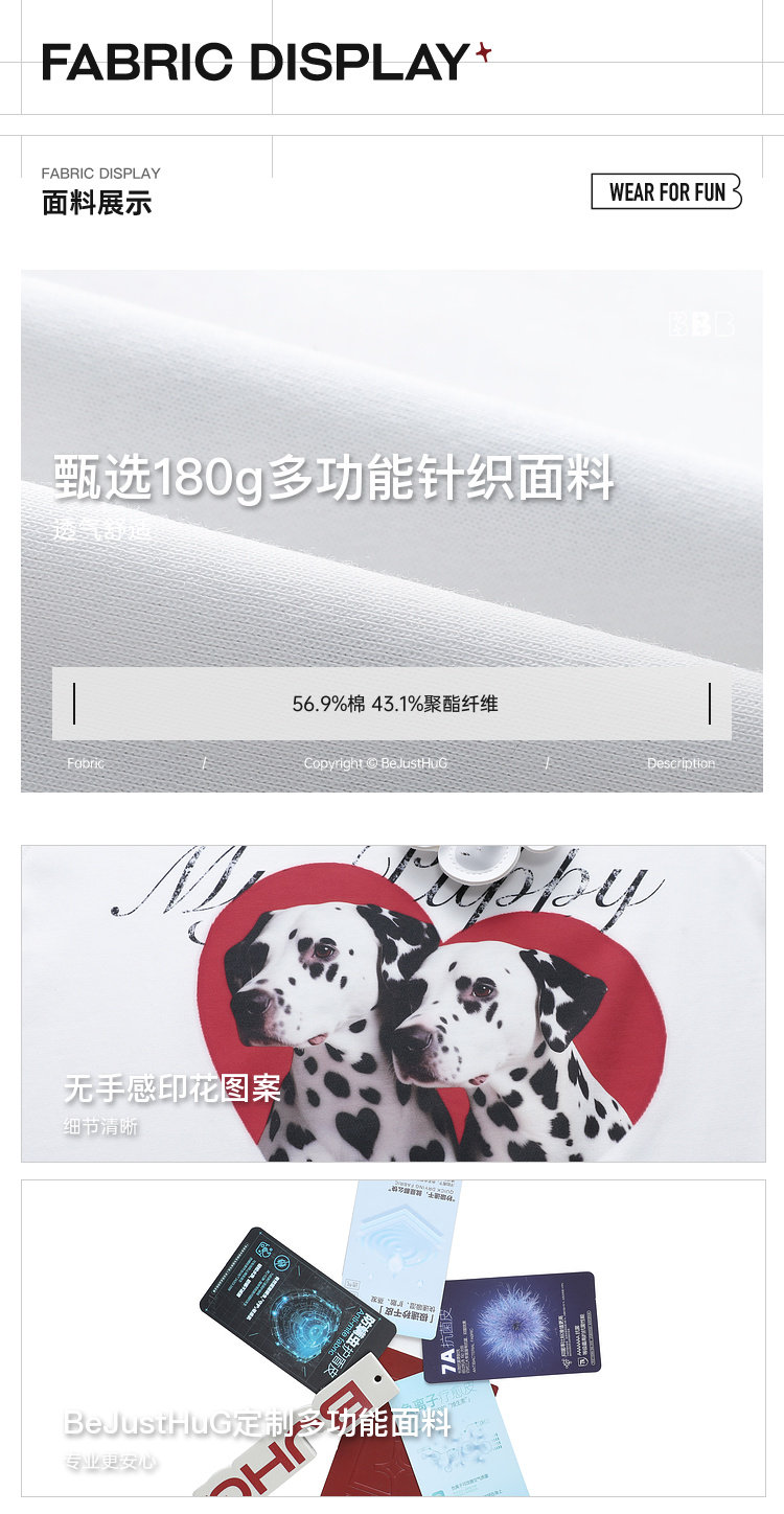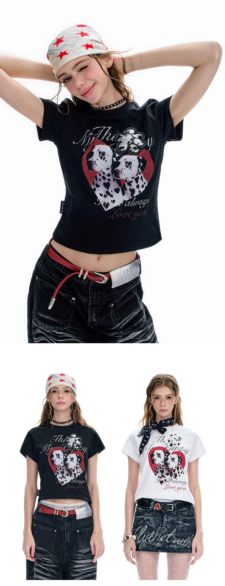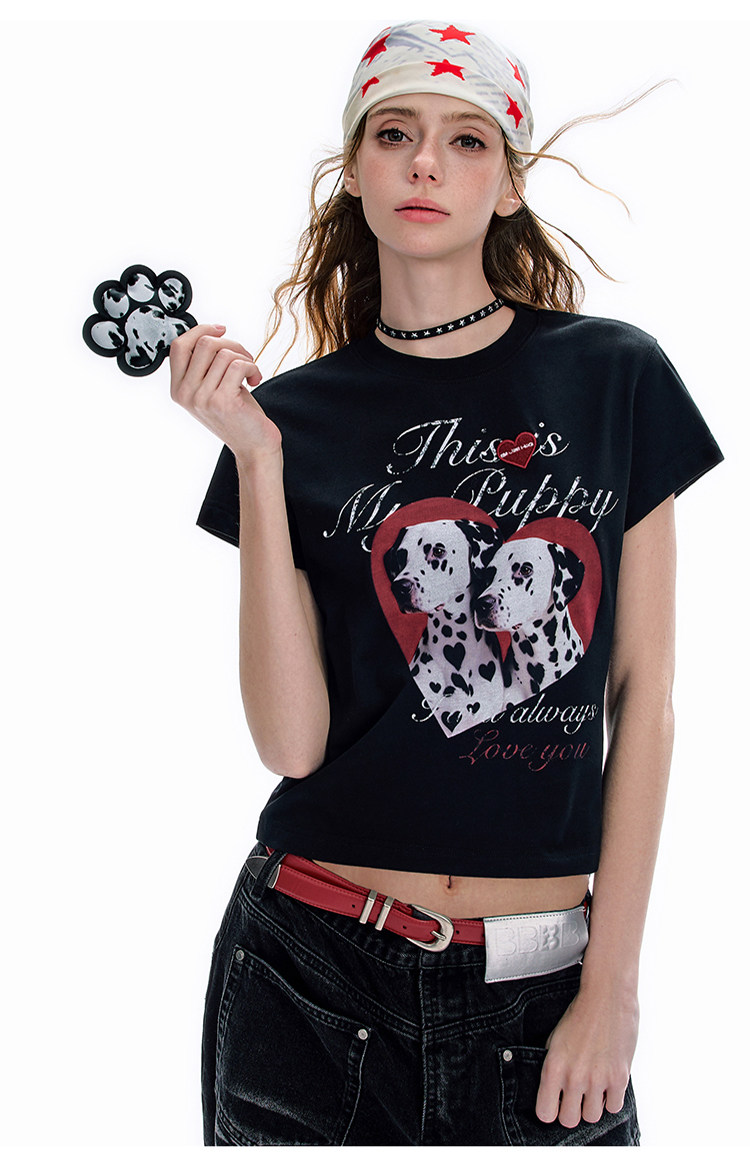 BJHG不计后果 不宠系列短袖t恤女夏季凉感速干斑点狗印花修身上衣