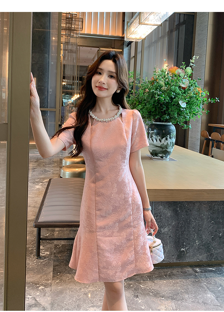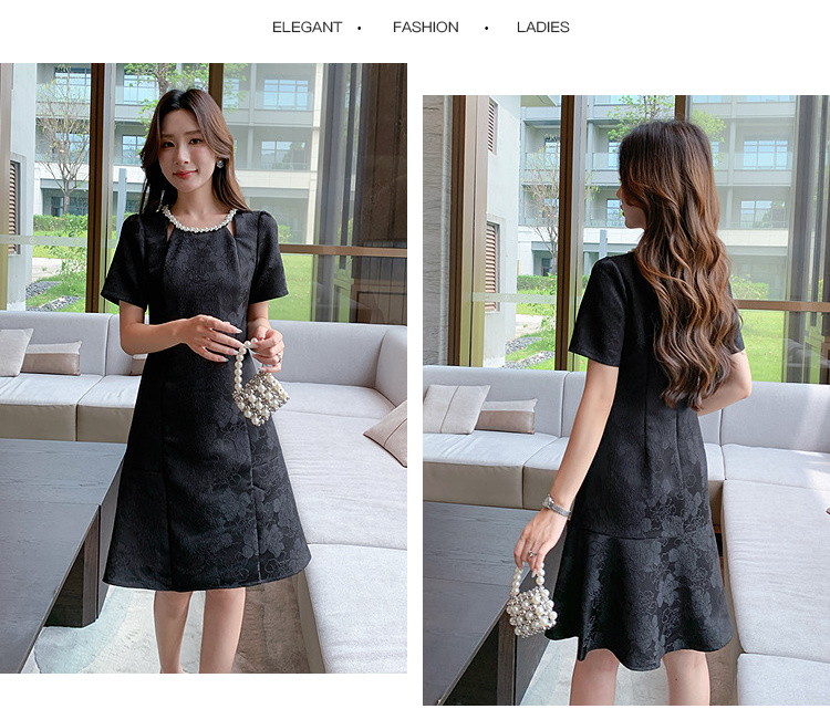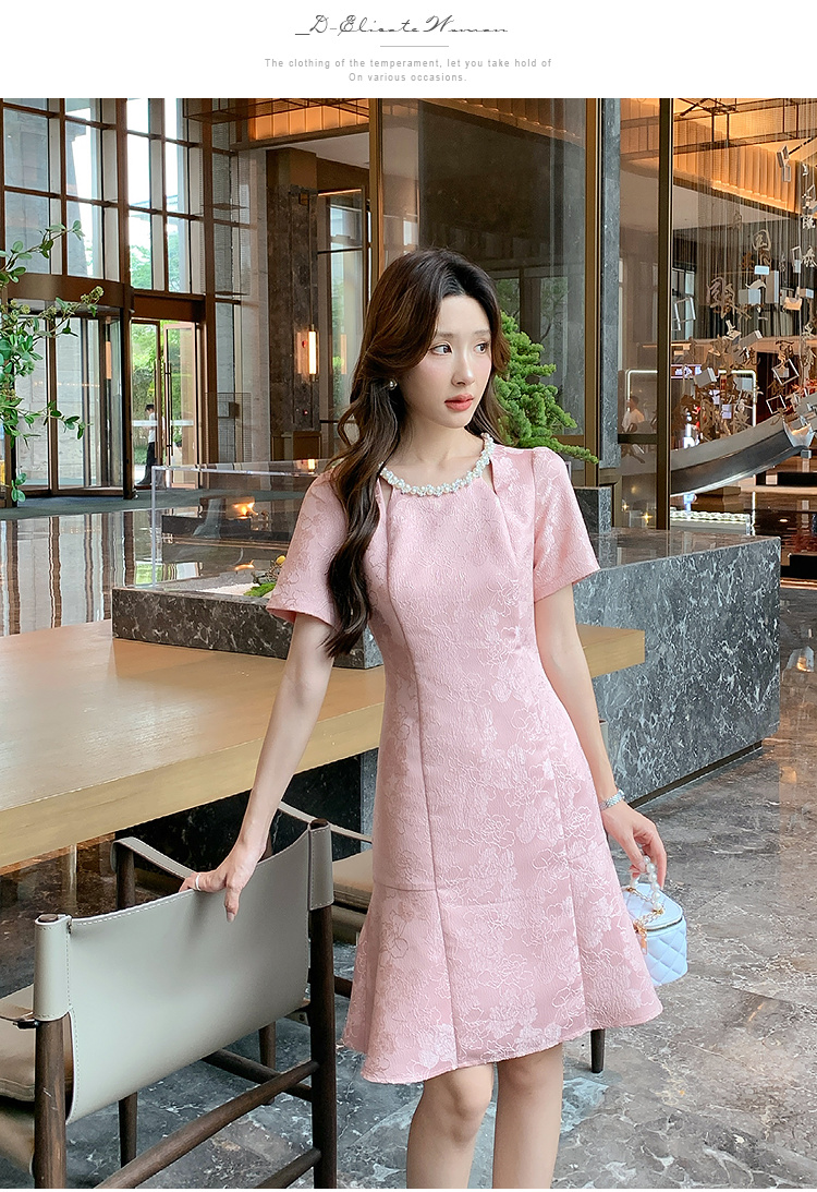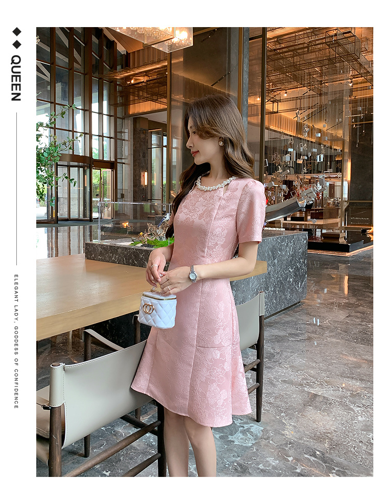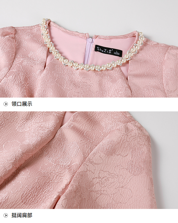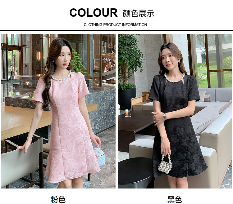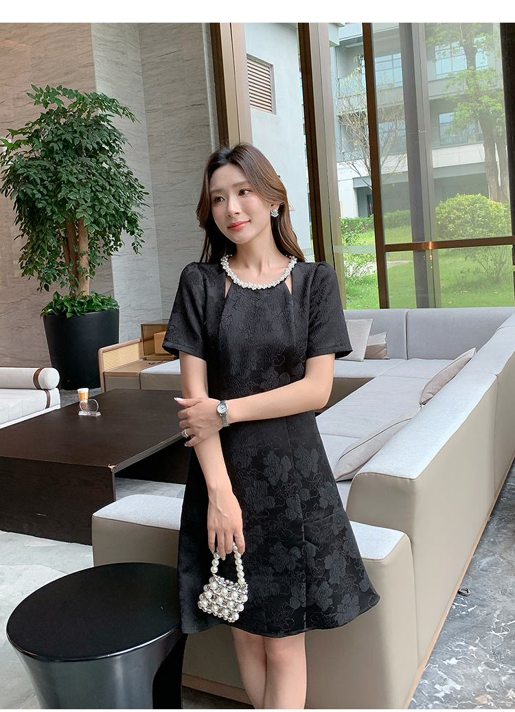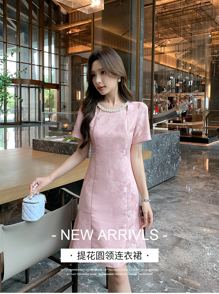 【清仓超15天不保价】奢姿大码女装2025夏季新款胖妹妹气质轻奢休闲提花钉珠圆领连衣裙9952890389