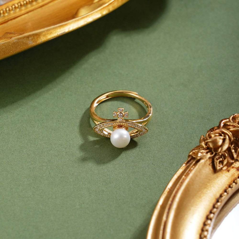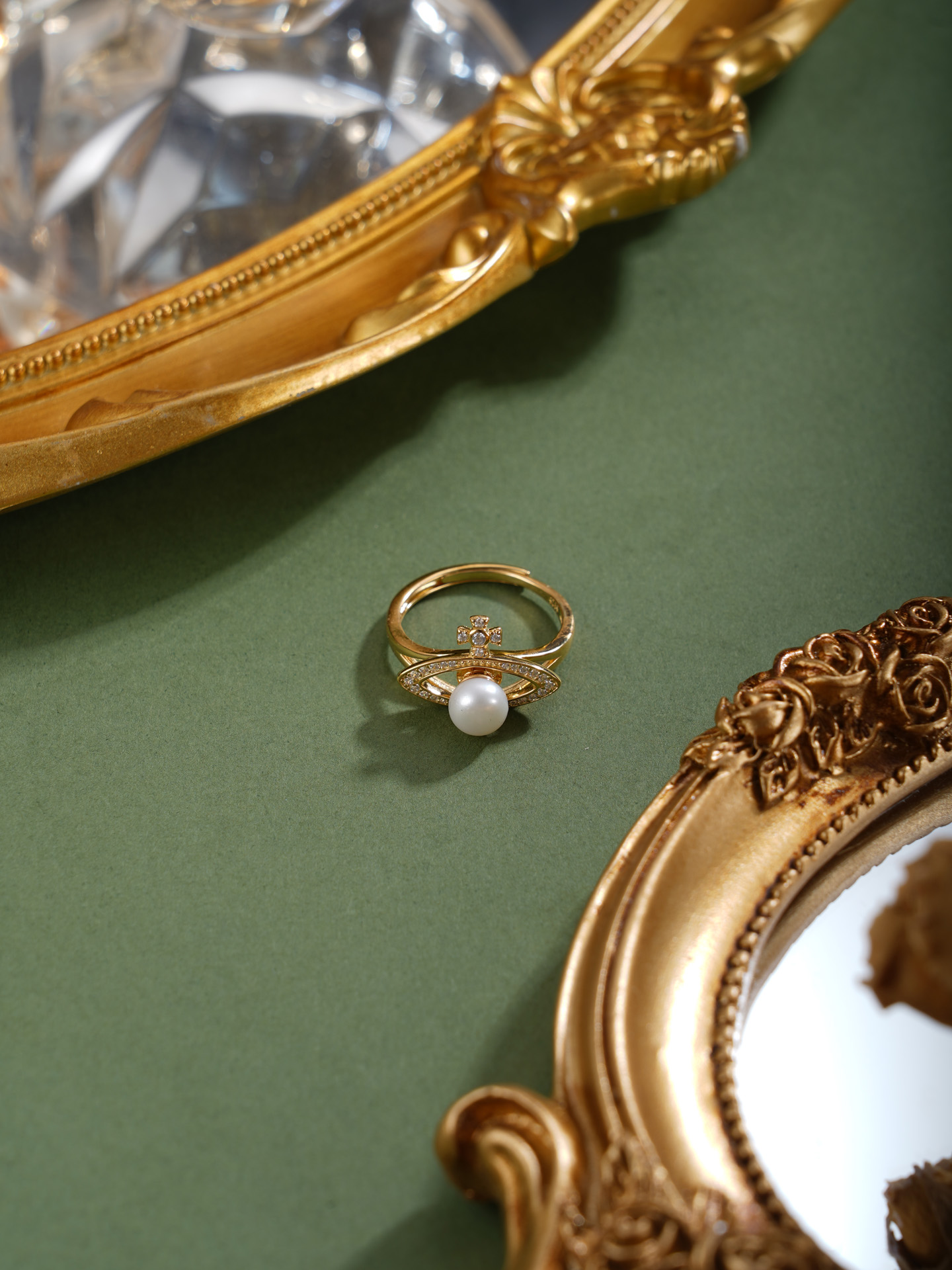 子佩集【幸运之眼】银S925珍珠惜王妃戒指【R2163】镀金西太后土星2602