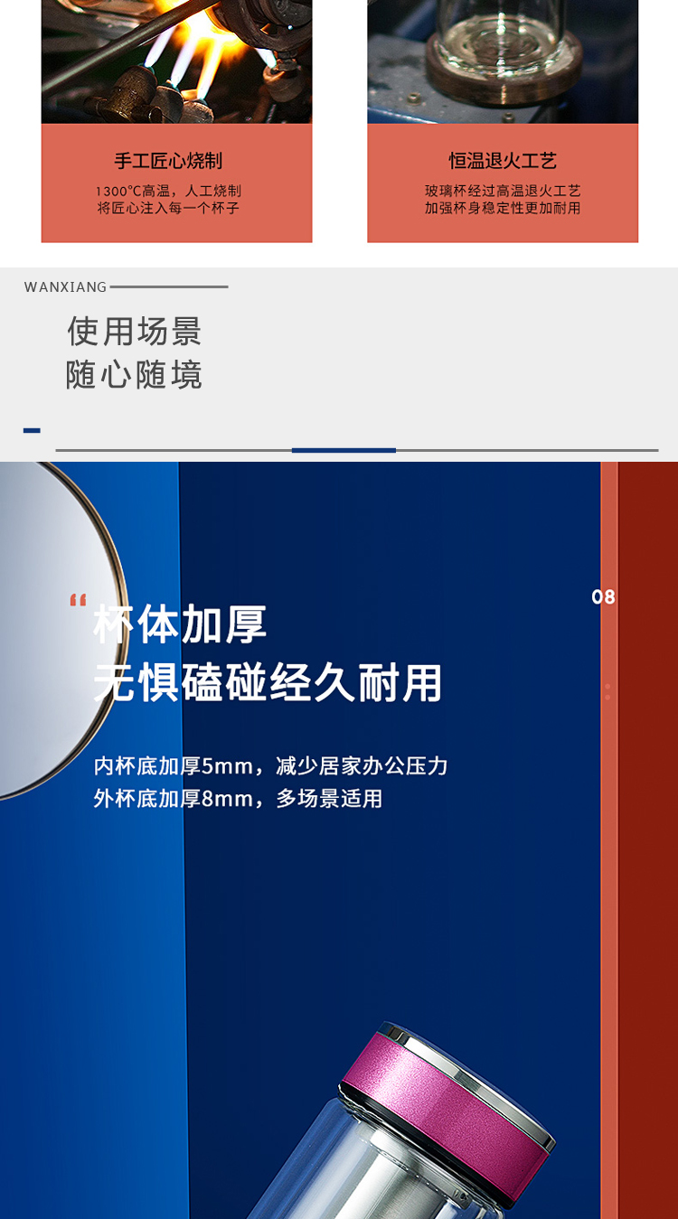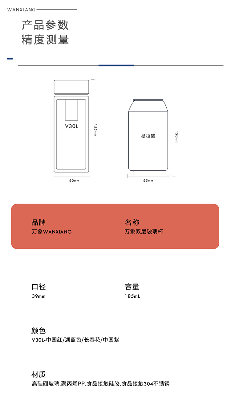 万象双层玻璃杯185ML/V30L(颜色随机)