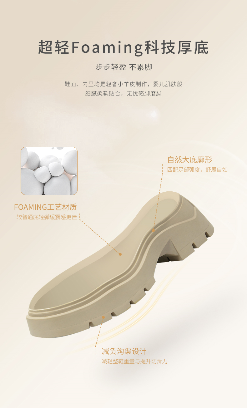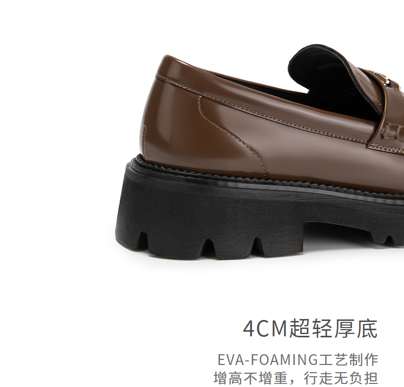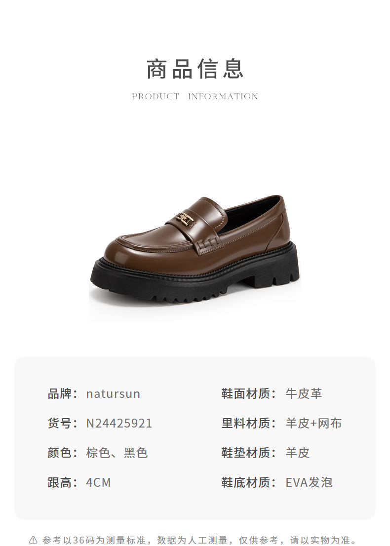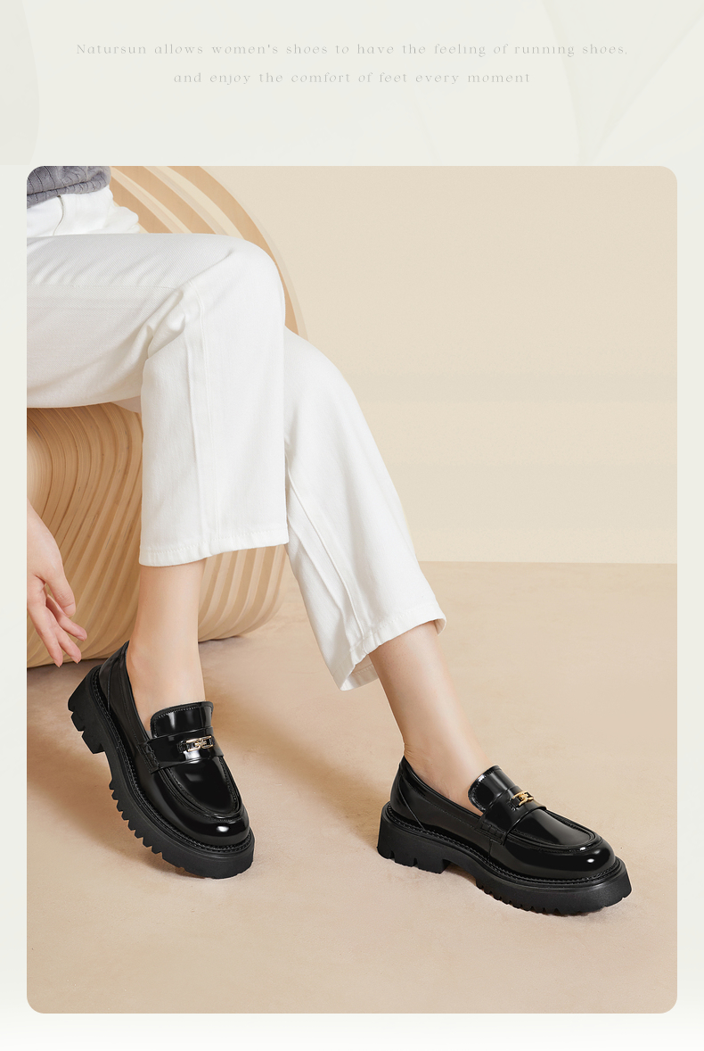 natursun女鞋厚底松糕鞋女式英伦风增高一脚蹬乐福鞋N24425921