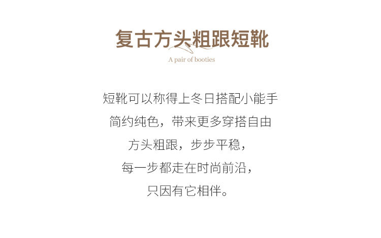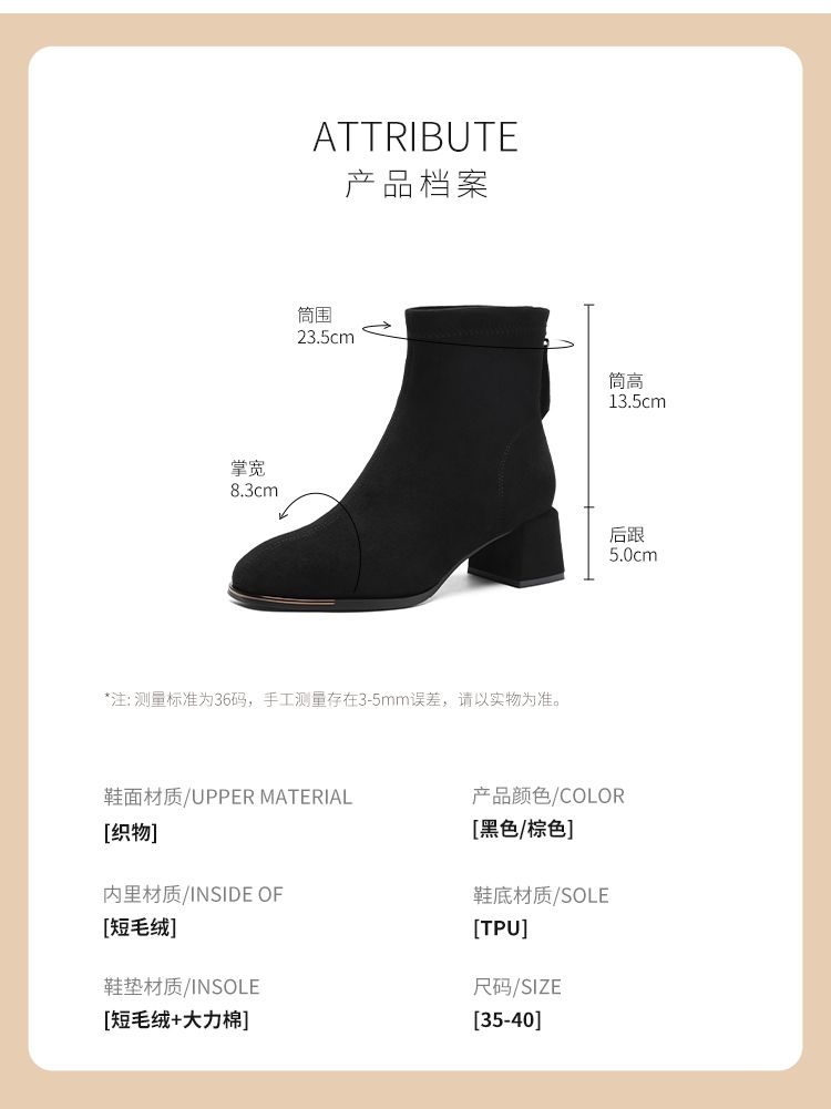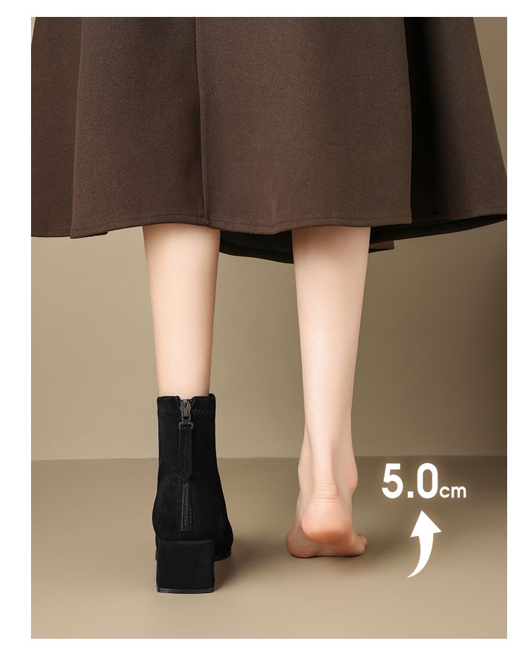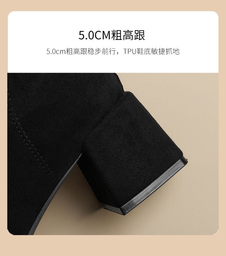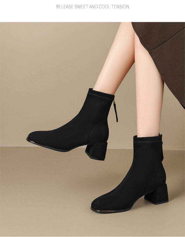 ZHR则则百搭绒面短靴女2024新款方头时装靴粗跟美拉德瘦瘦靴女靴