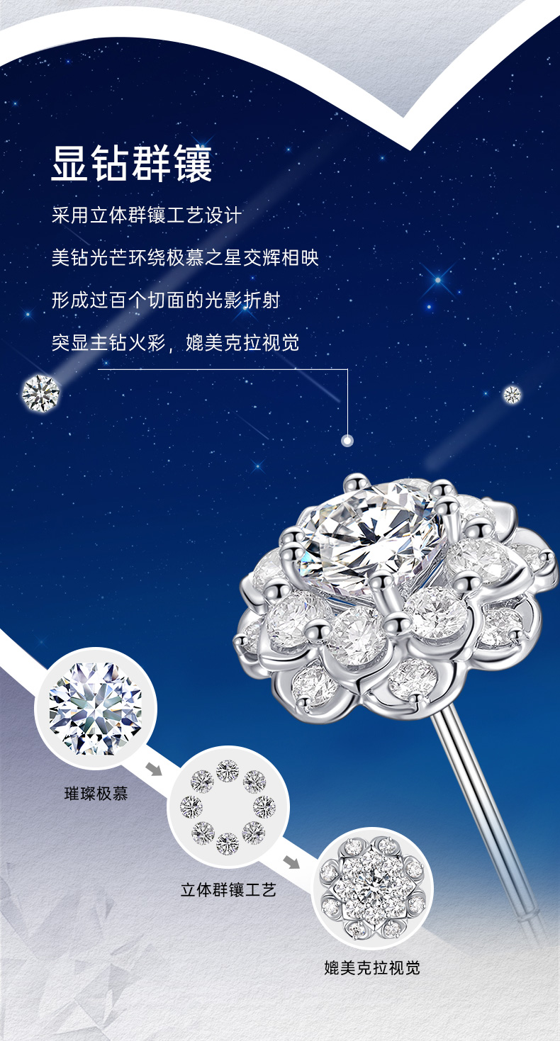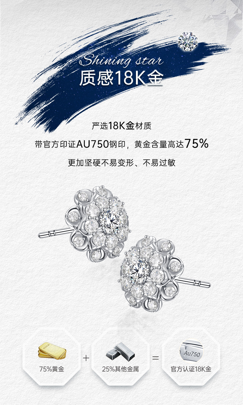【极慕之星】【门店同款】钻石世家 18K金钻石耳饰 花好月圆系列钻石耳饰