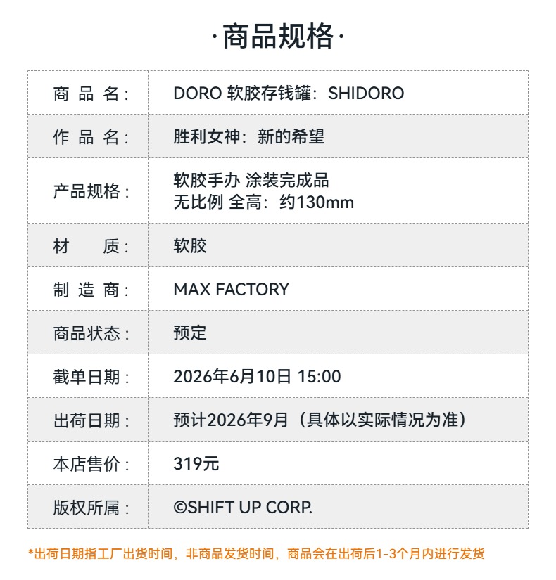 【GSC预售定金】DORO 软胶存钱罐:SHIDORO 胜利女神:新的希望