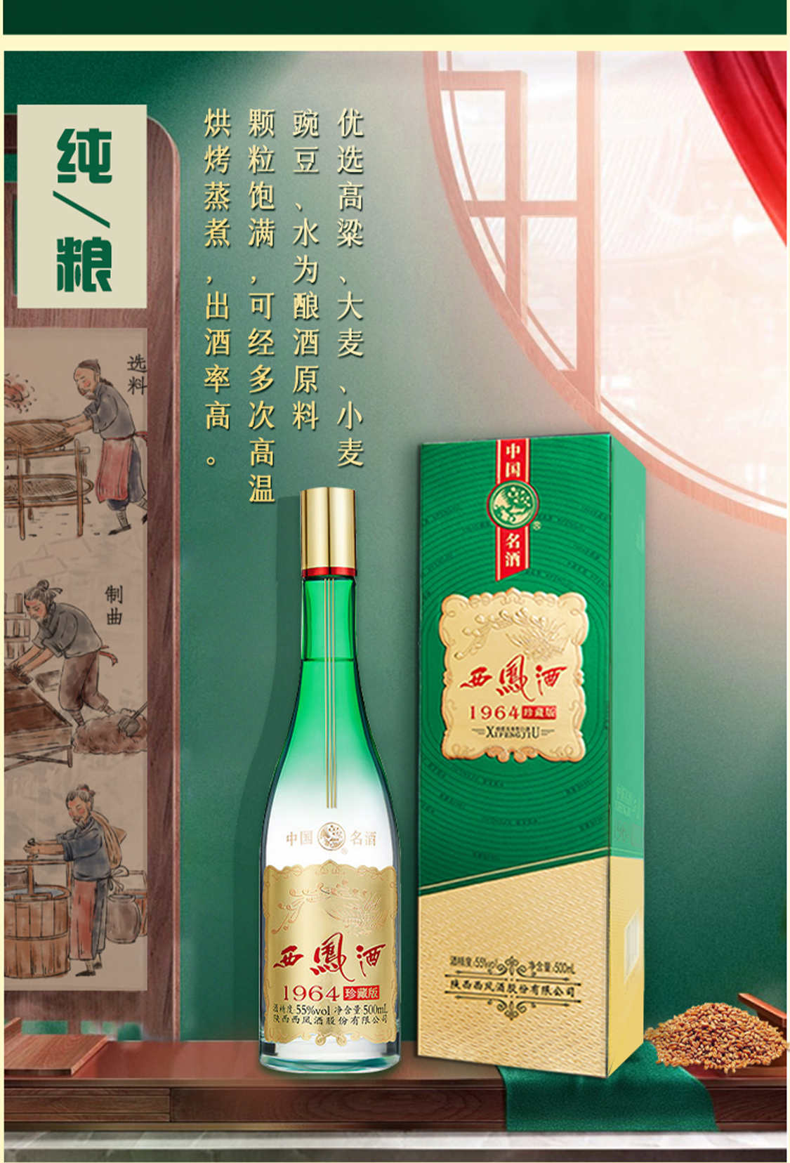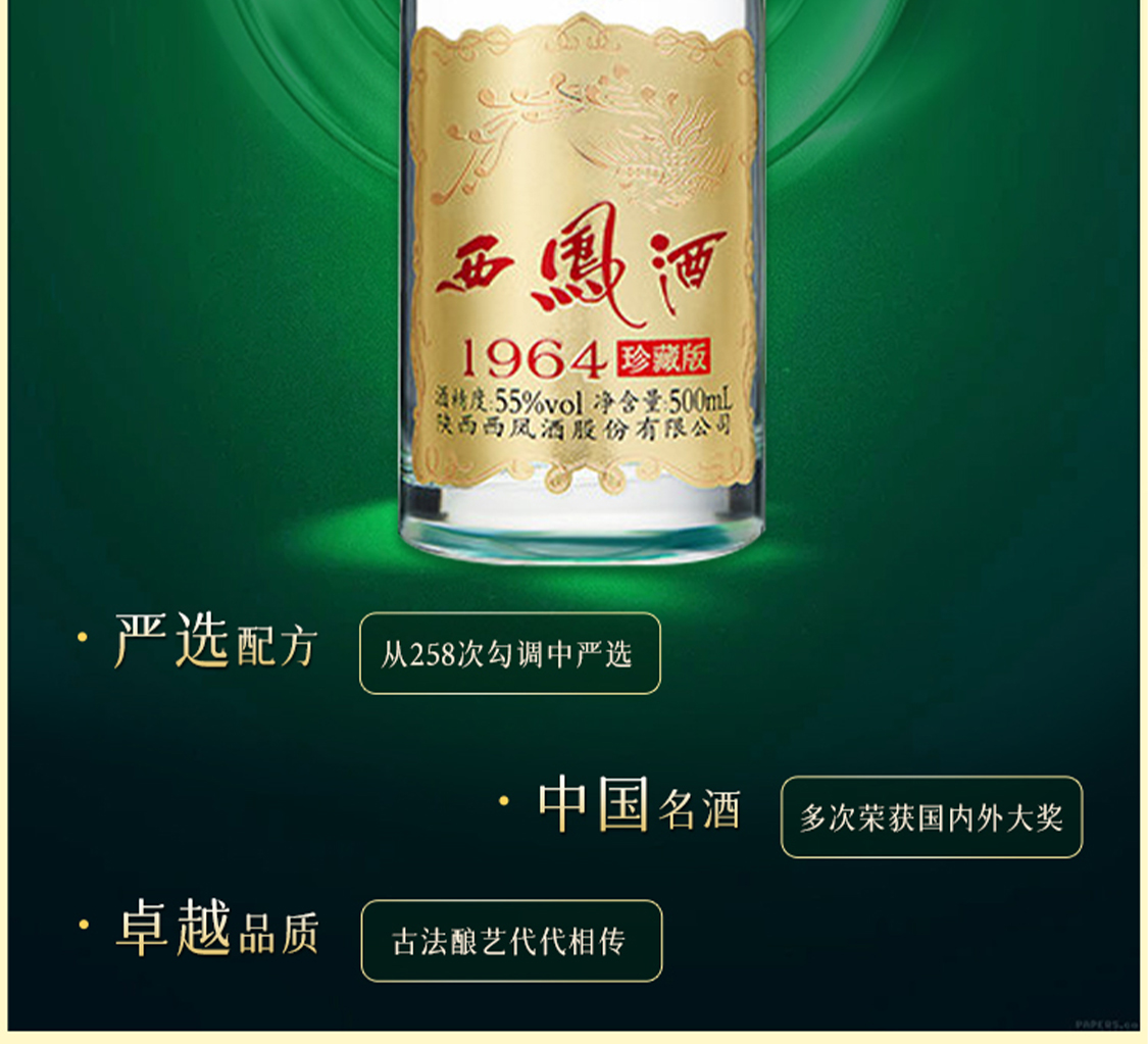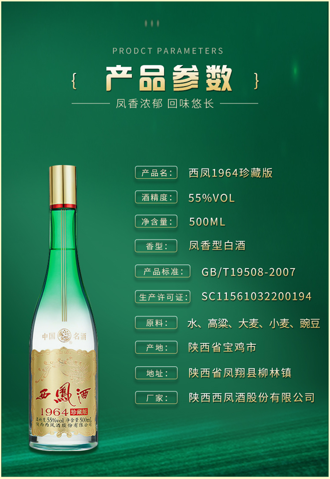 西凤白酒55度 1964珍藏 500ml 凤香型 高度 白酒 礼盒 包邮