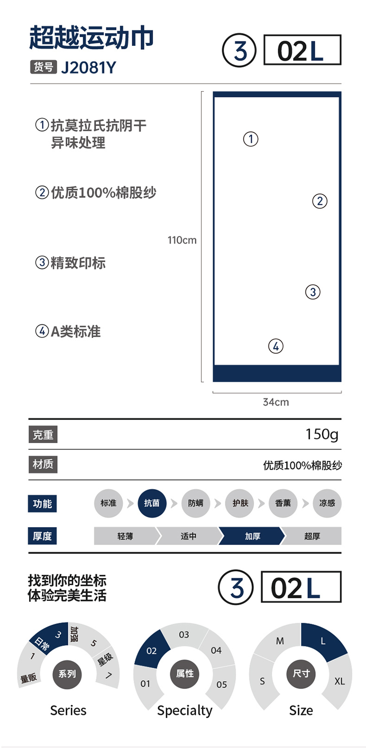 自营(云鑫)-洁玉运动好搭档超越运动毛巾 3A级别抗菌