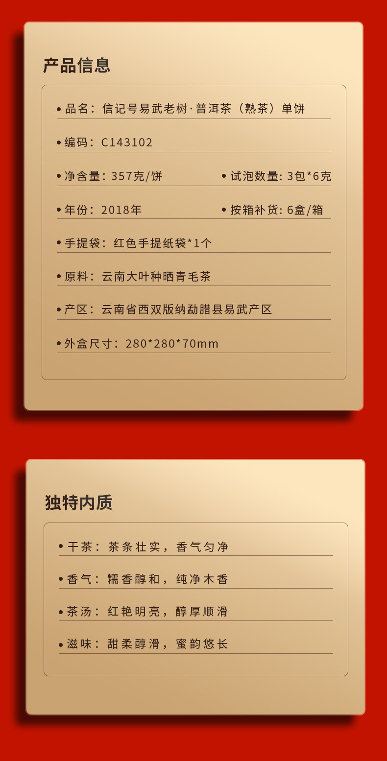 八马信记号 | 信记号易武老树普洱茶(熟茶)单饼 357克