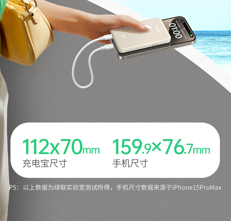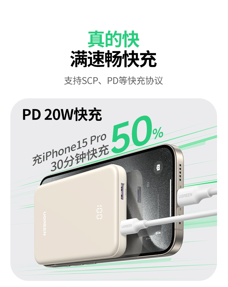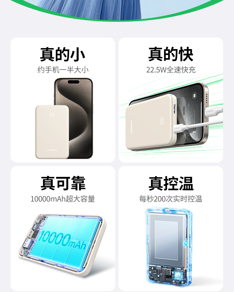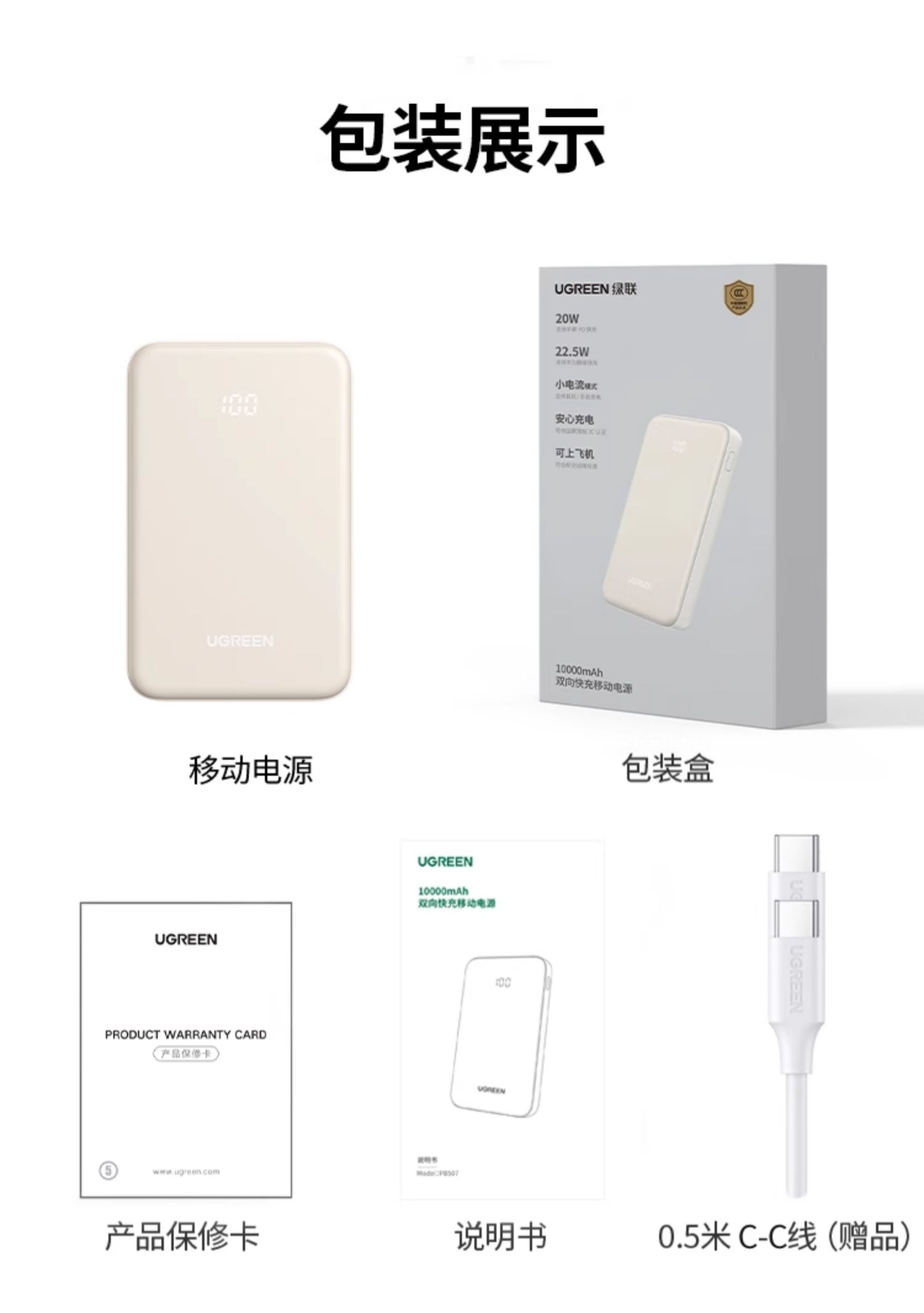 绿联10000mAh双向快充移动电源25684奶茶色
