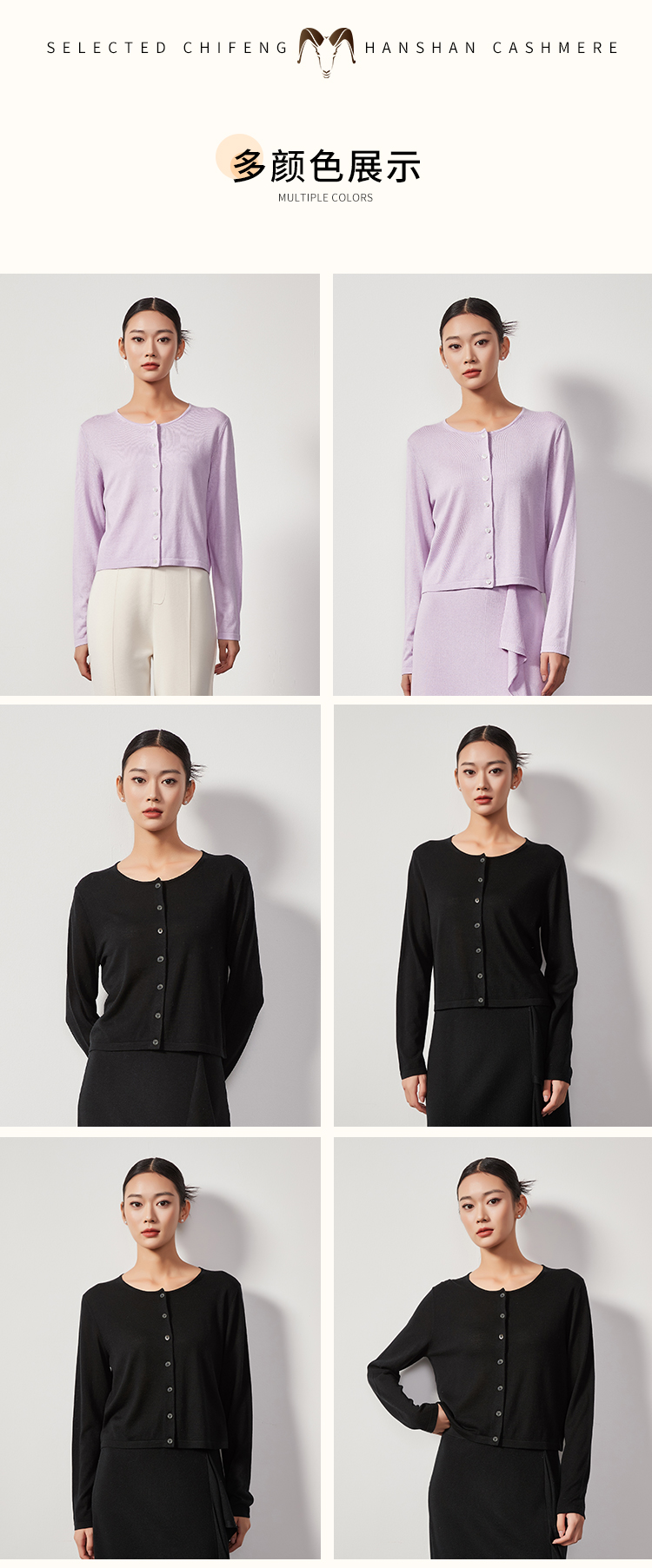 东黎 • 丝绒女士春夏纯色圆领开衫 4068