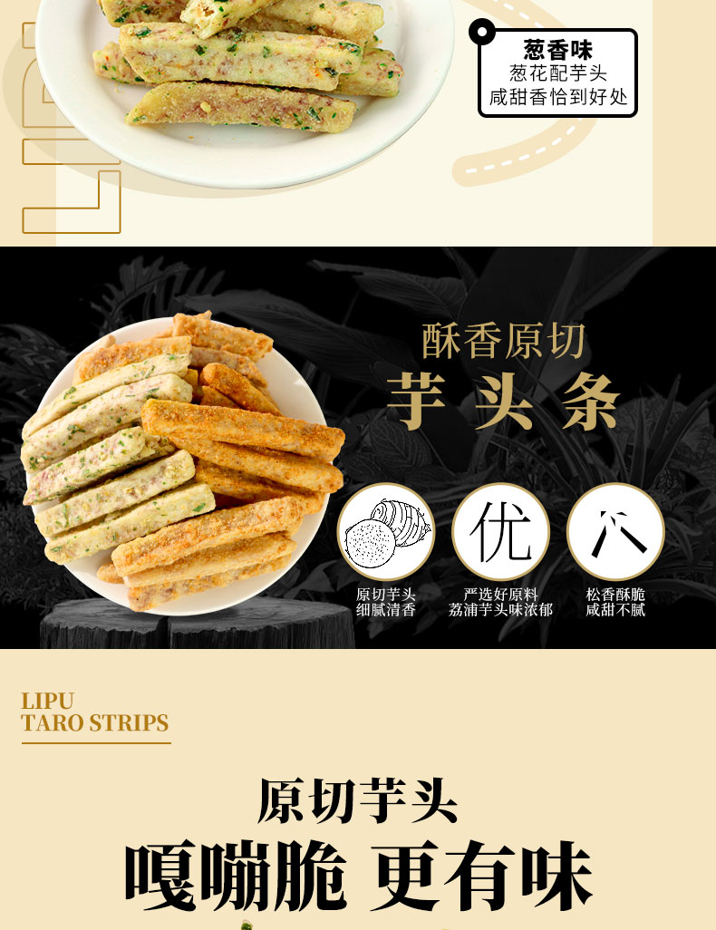 【分销】芋头条零食(蟹黄/葱香/香辣),选用正宗广西荔浦芋头原切,VF真空脱油工艺非油炸