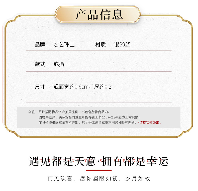 【宏艺珠宝】挚爱铭心情侣对戒·银s925戒指