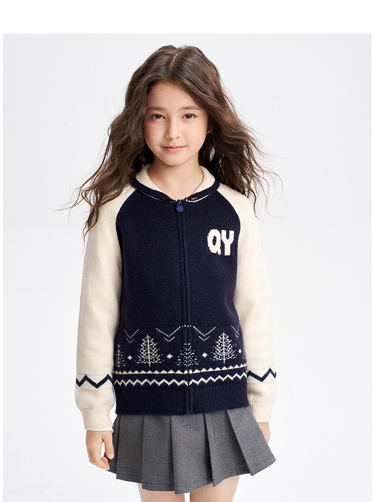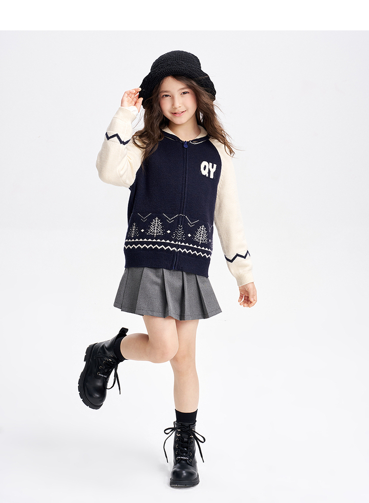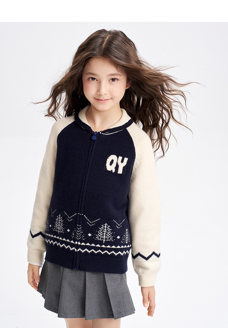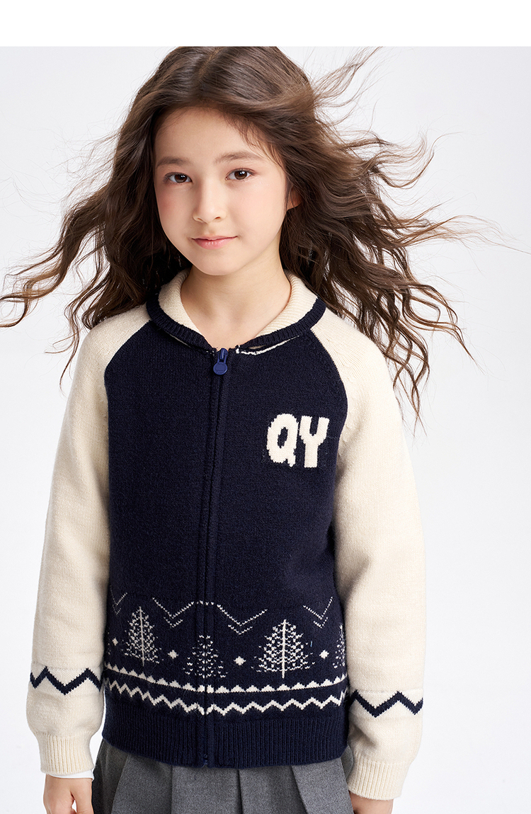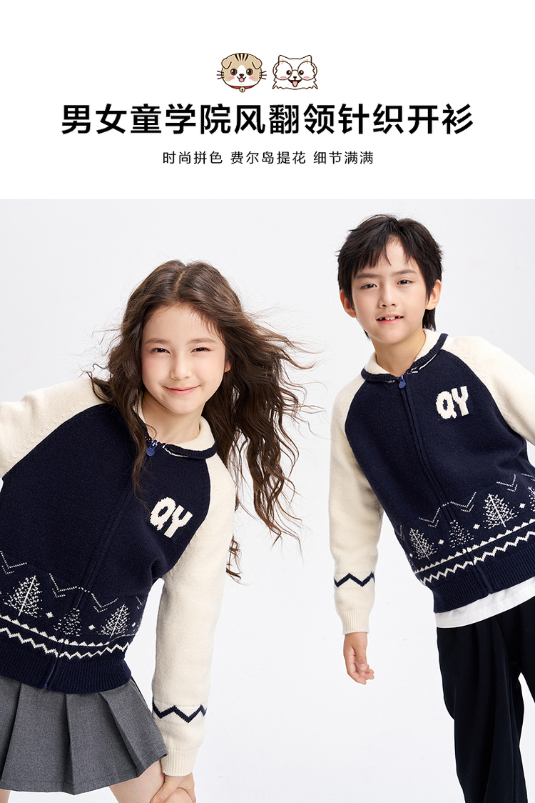 笛莎Deesha 2025秋季新款男女童学院风翻领针织开衫