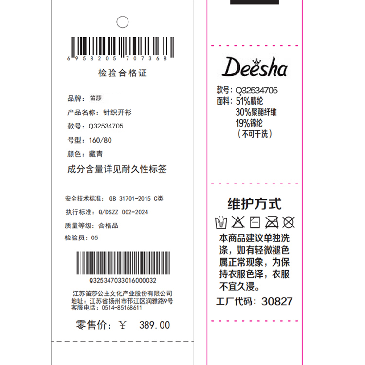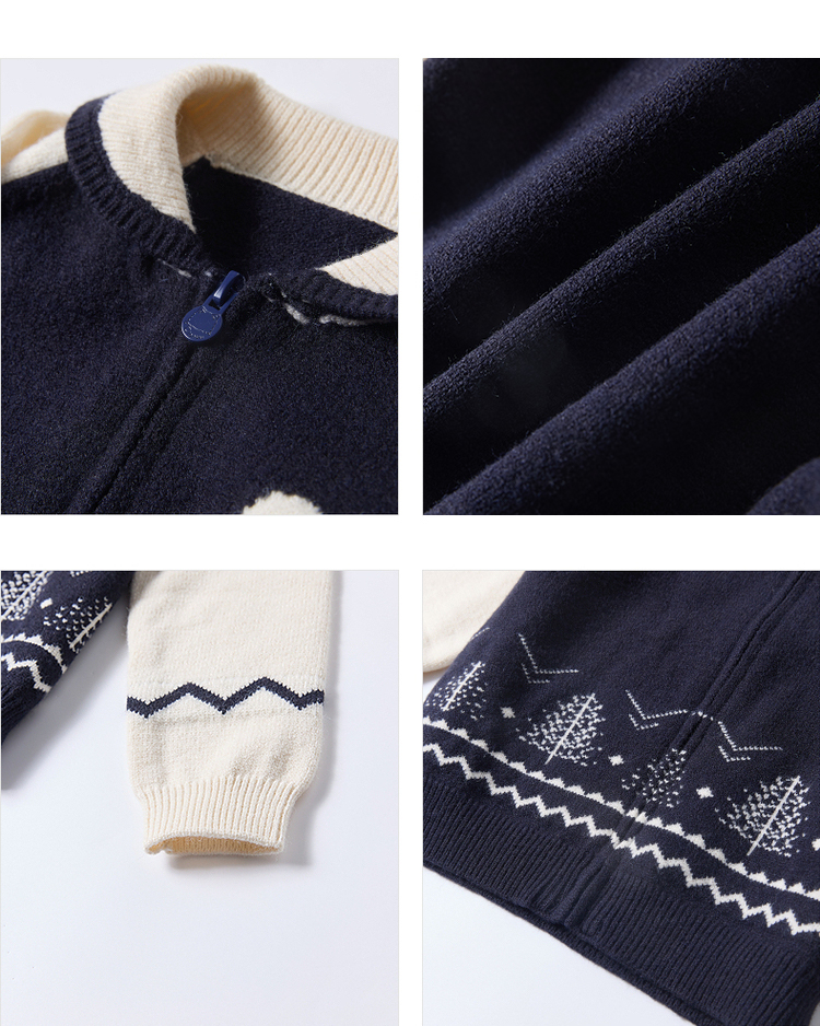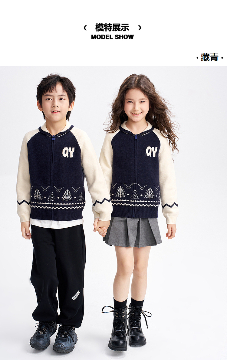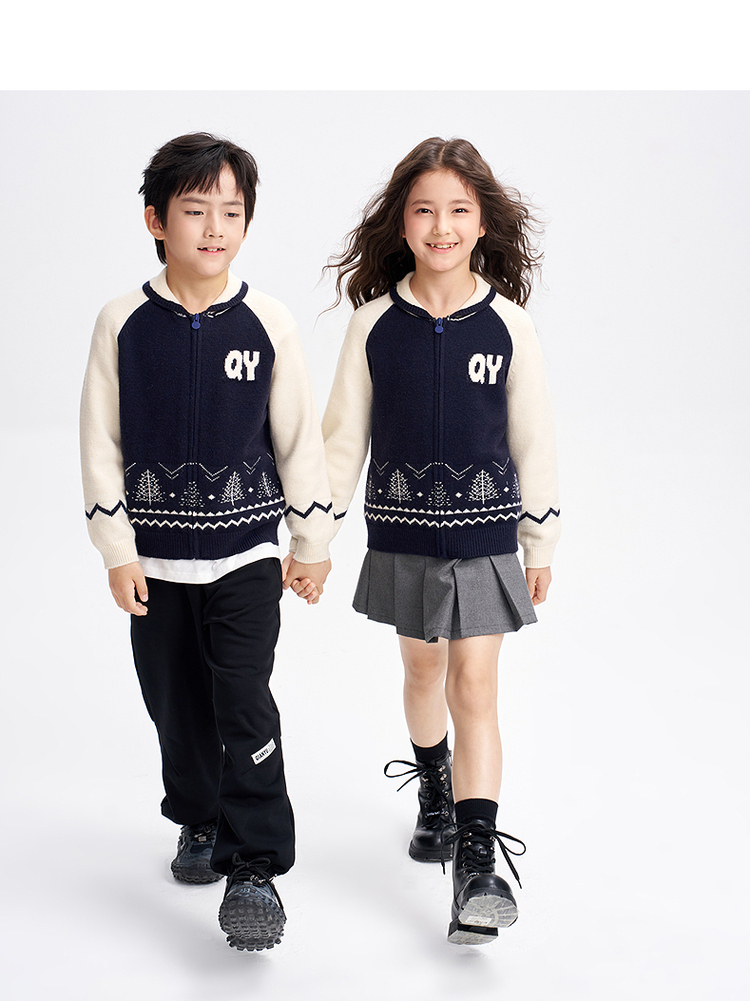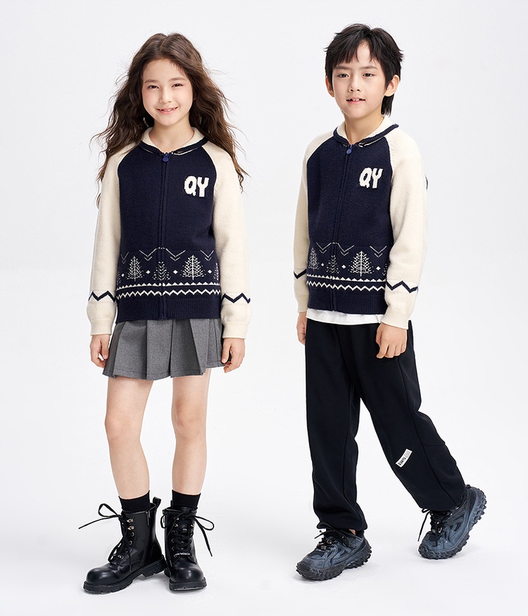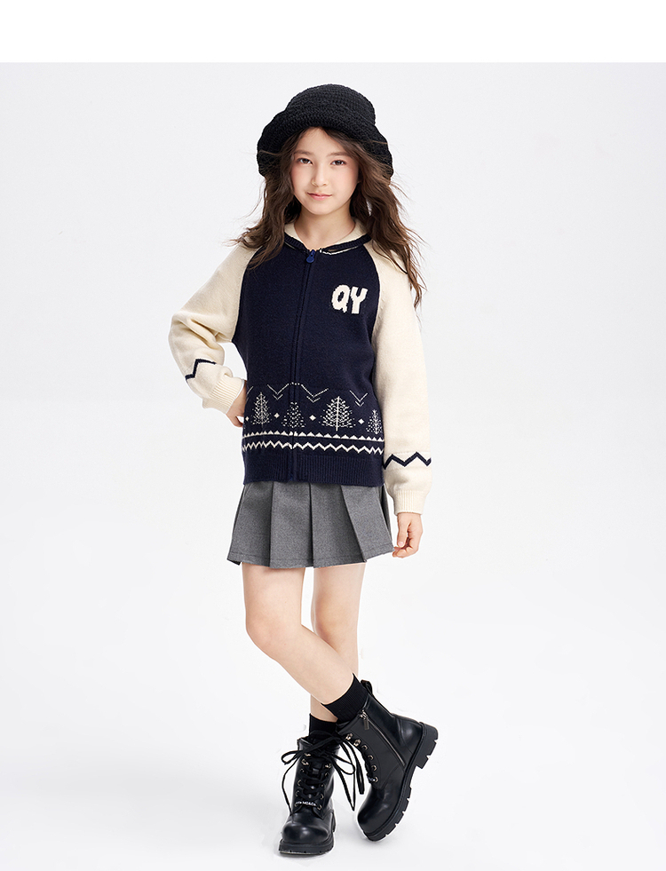 笛莎Deesha 2025秋季新款男女童学院风翻领针织开衫