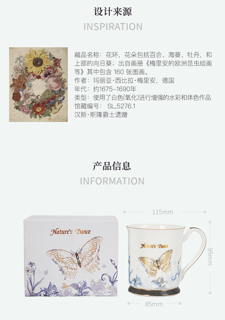 大英博物馆 博物志系列 蝴蝶复古 骨瓷杯