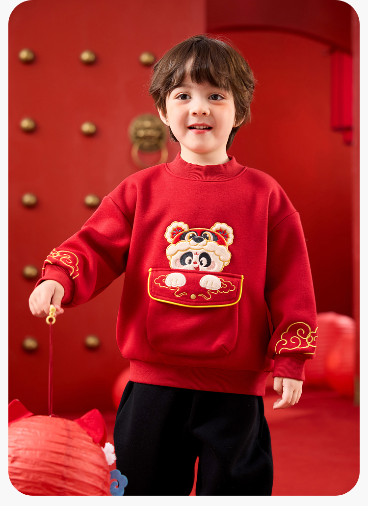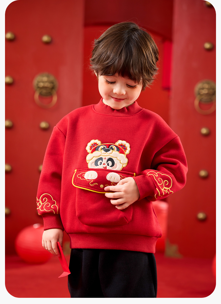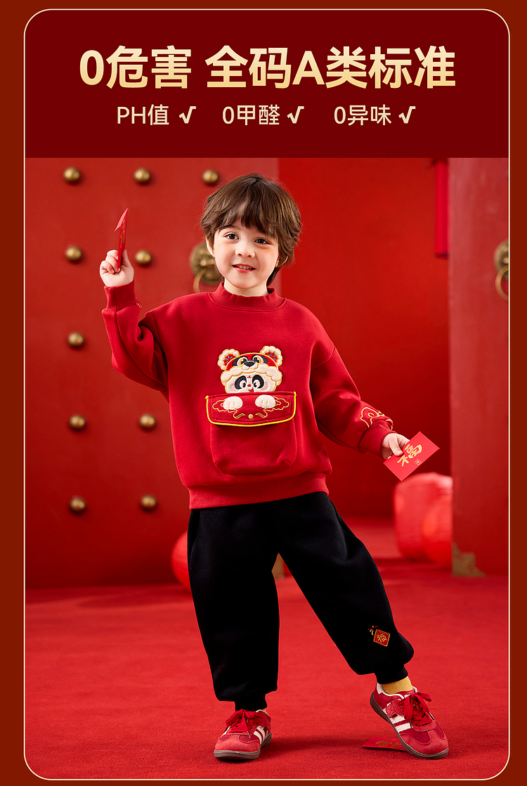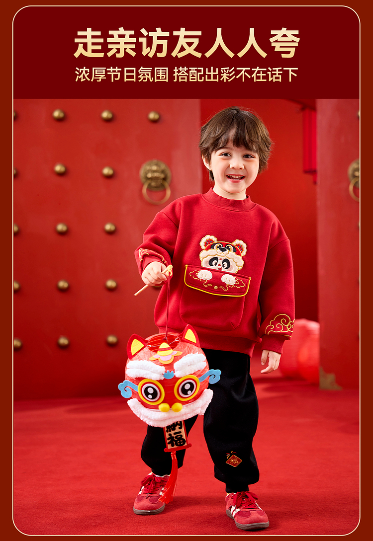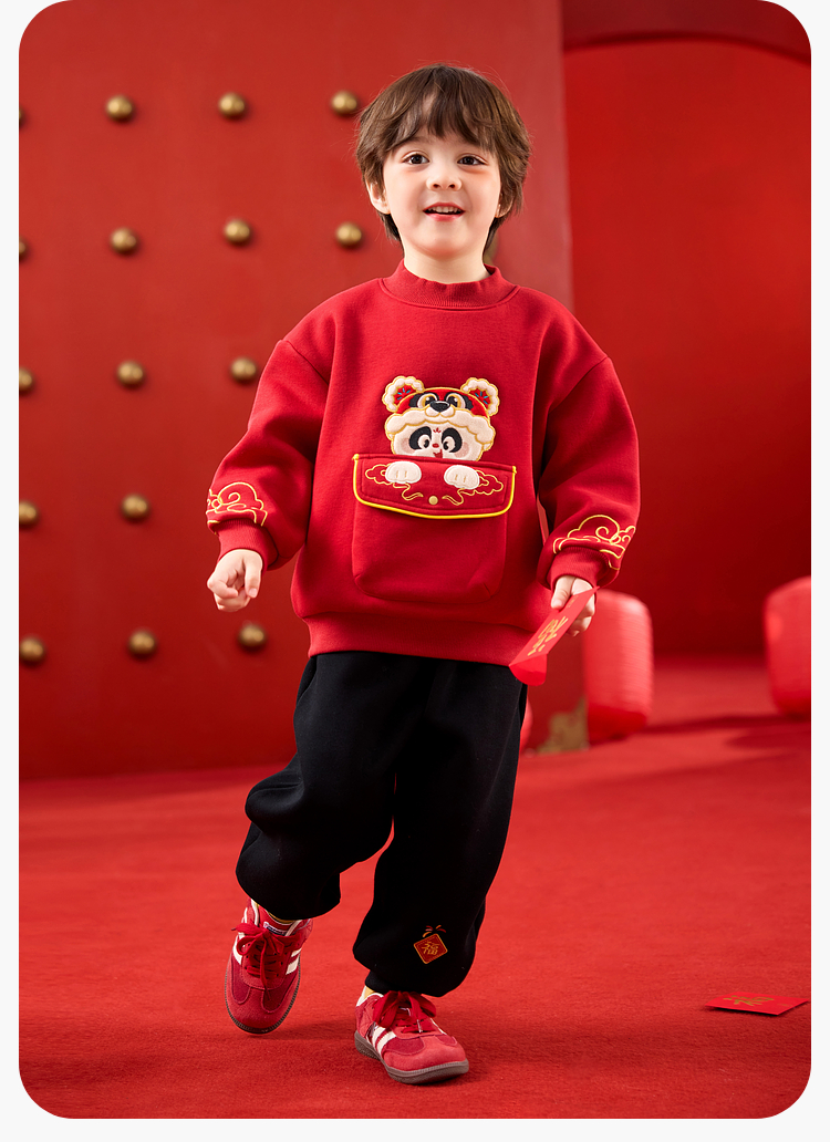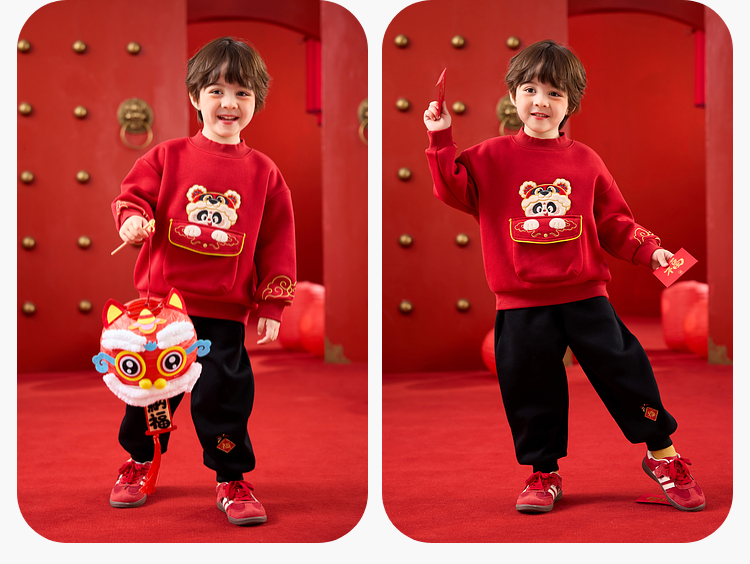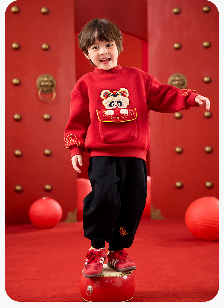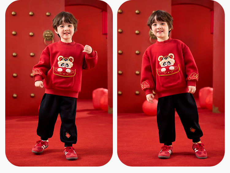 嘟嘟家儿童套装男童年服加厚女童年装国风宝宝拜年服红色冬款