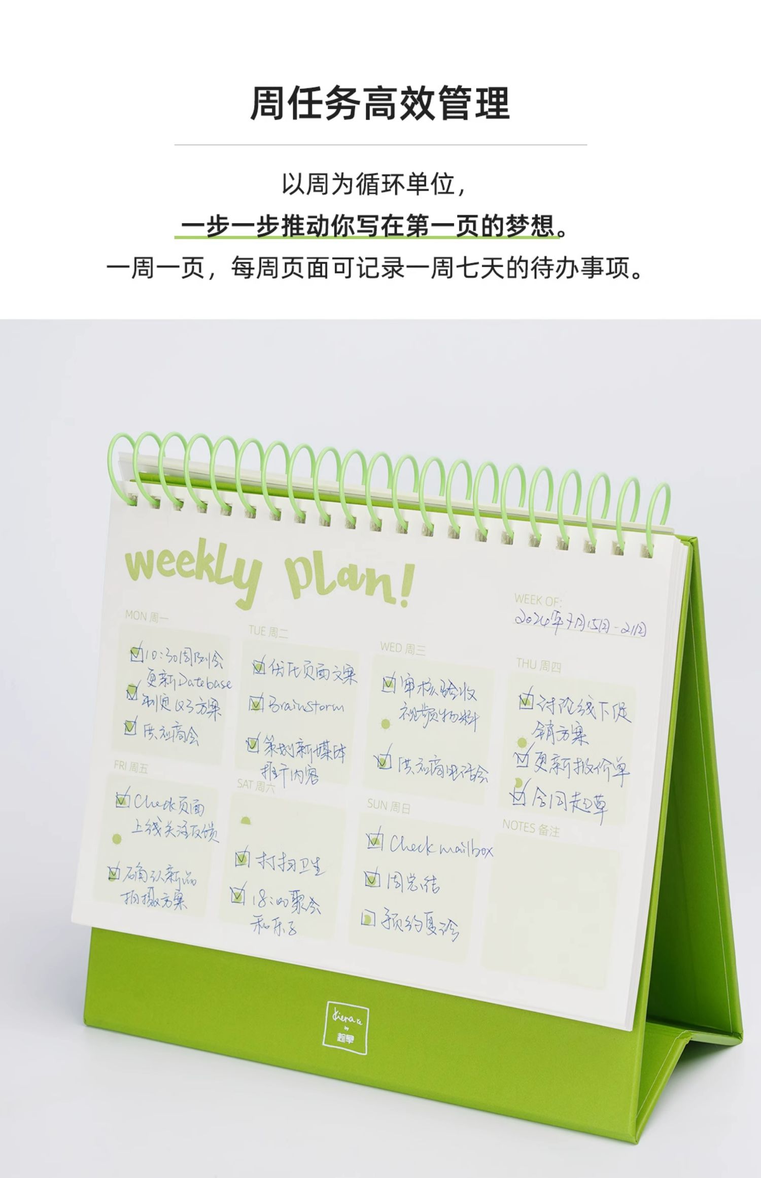 【趁早文创】趁早超自绿系列可立式周计划本一周一页每日计划管理打卡日程表线圈本