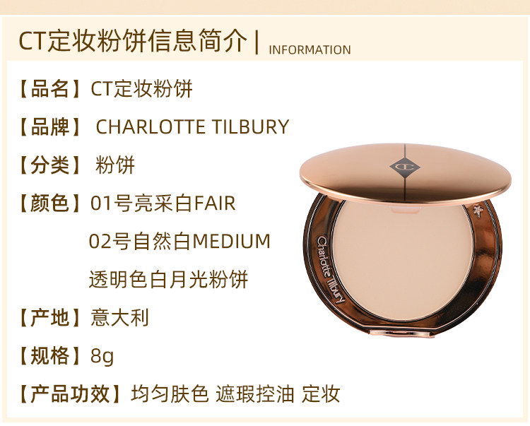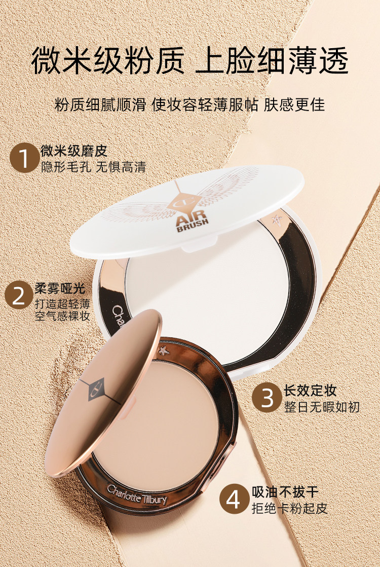 Charlotte Tilbury CT无瑕极细定妆蜜粉饼8g 哑光控油 一秒柔焦