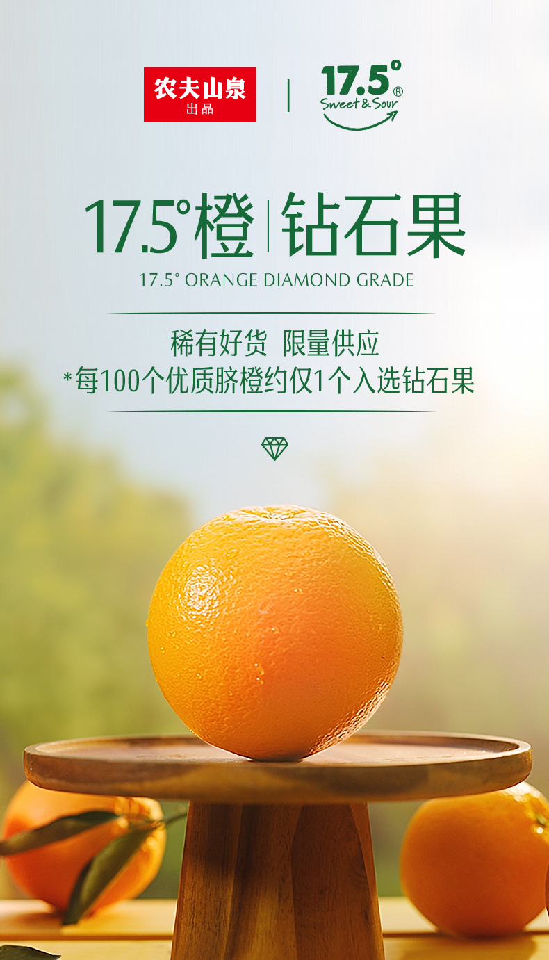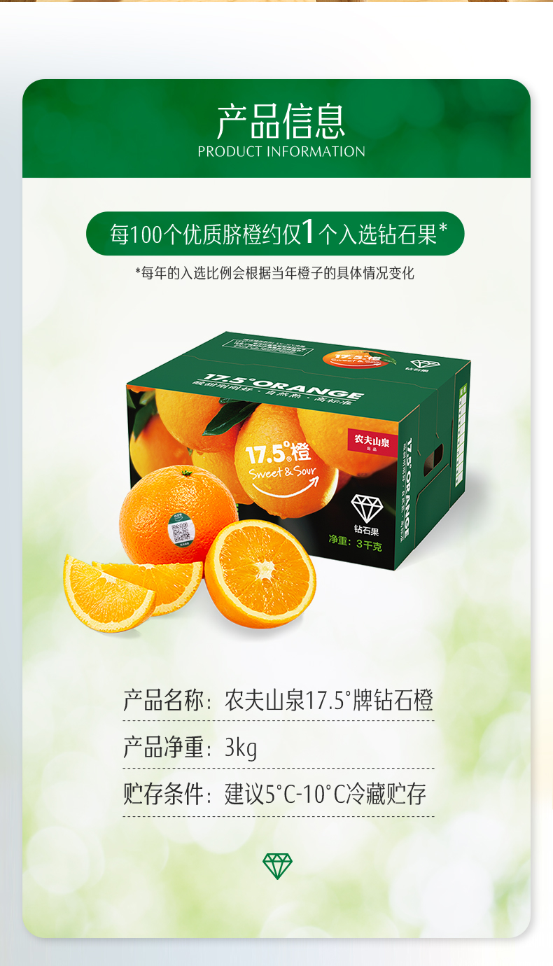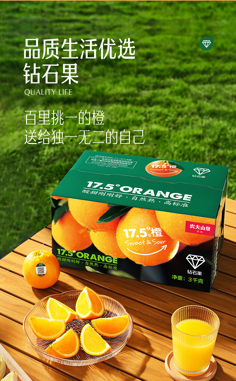 农夫山泉17.5°脐橙钻石果3/5kg鲜橙江西核心橙产区25年新鲜采摘上市酸甜可口