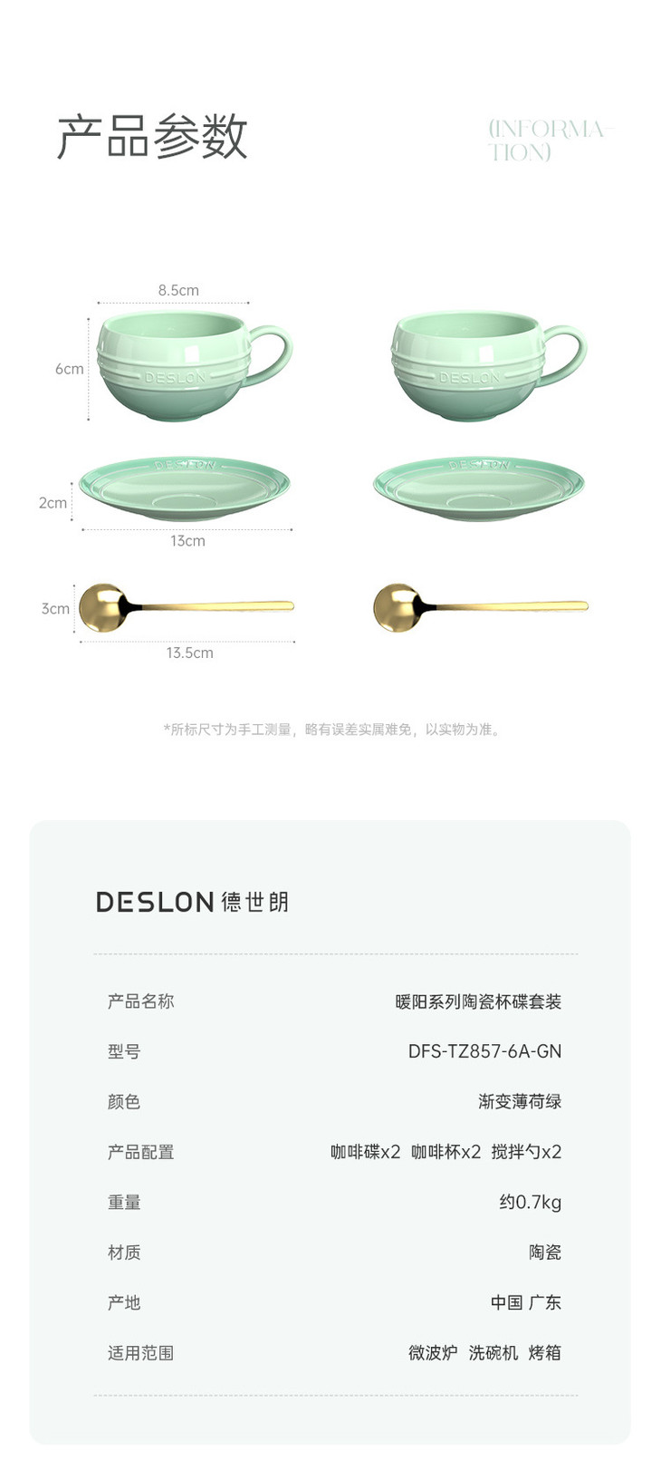 【规格】咖啡碟*2 、咖啡杯*2、 搅拌勺*2
