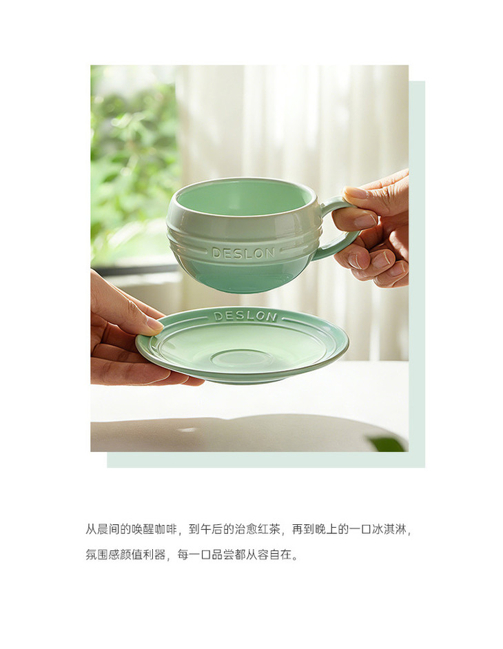 💕品牌直发!!!雅致生活|🌈【德世朗暖阳系列陶瓷杯碟套装DFS-TZ857-6A-GN】,解锁日常小美好‼️‼️ ✅线条浮雕设计 ✅匠心陶瓷 ✅磨砂防滑底缘 ✅渐变时尚元素🔝