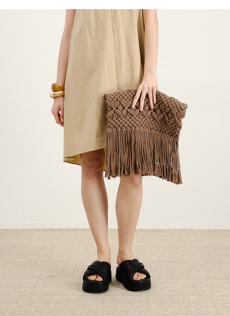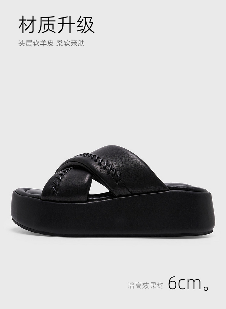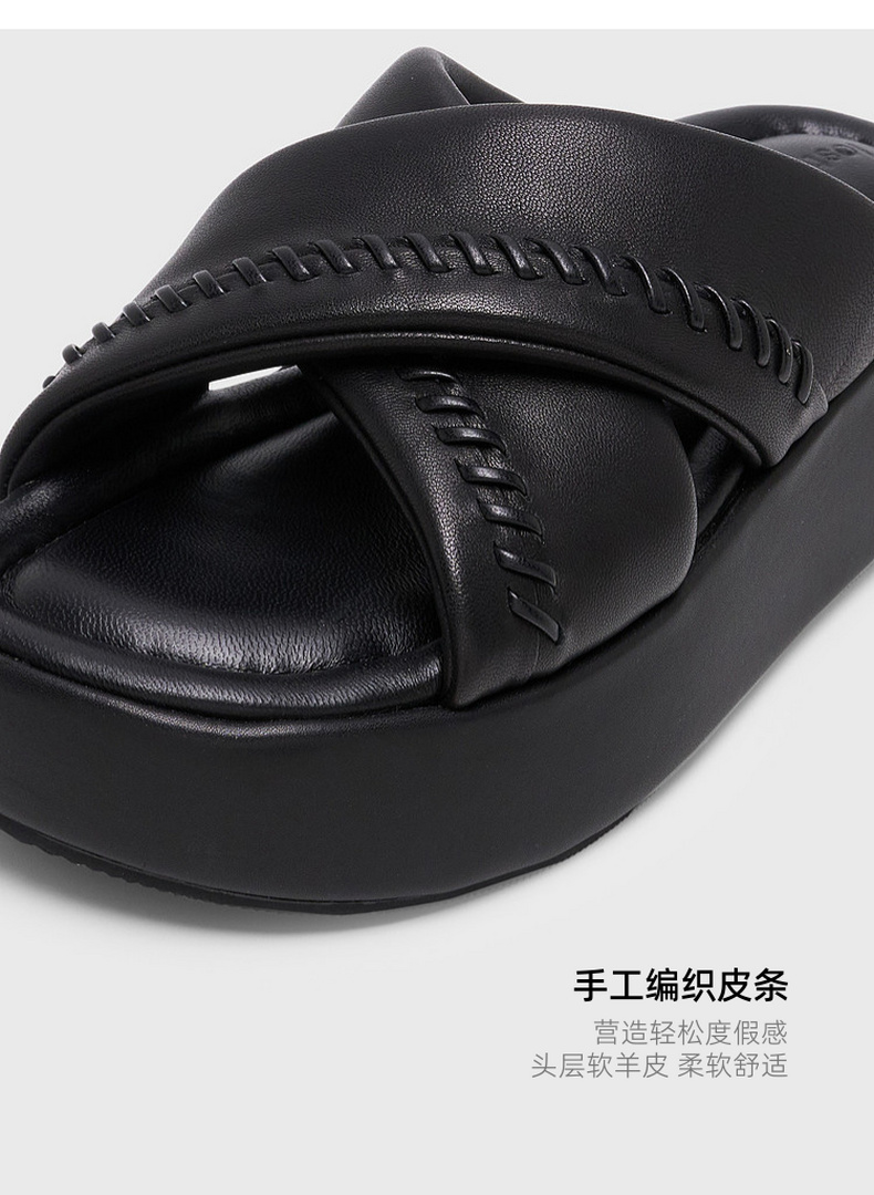 lost in echo2026春夏新款度假风交叉带手工编织厚底增高沙发拖女