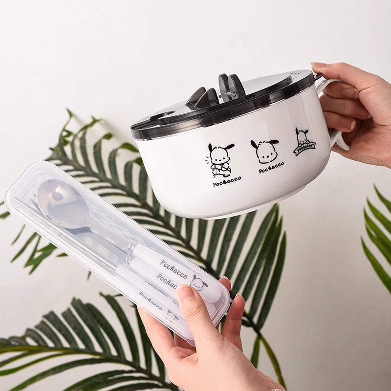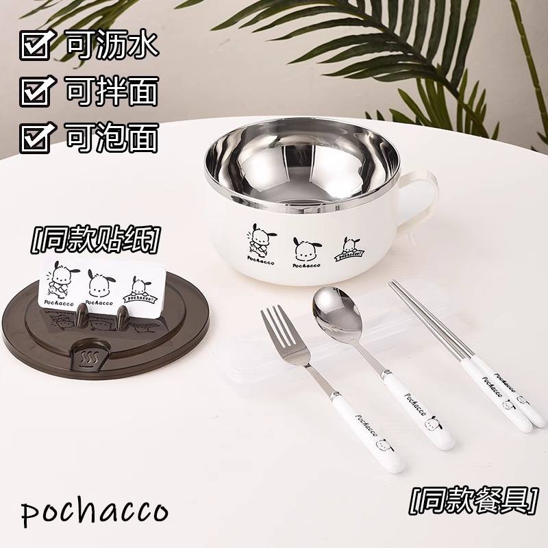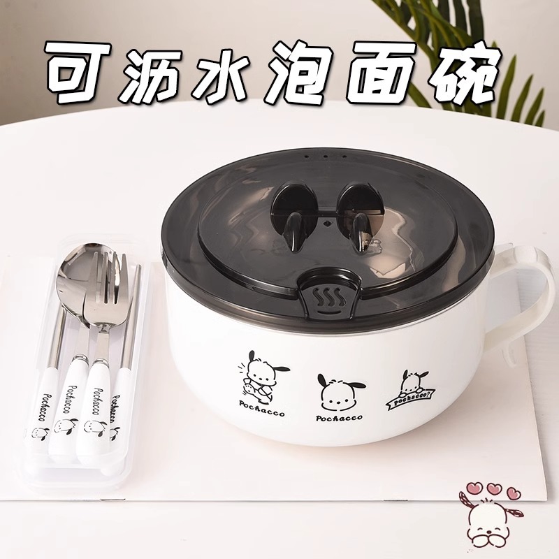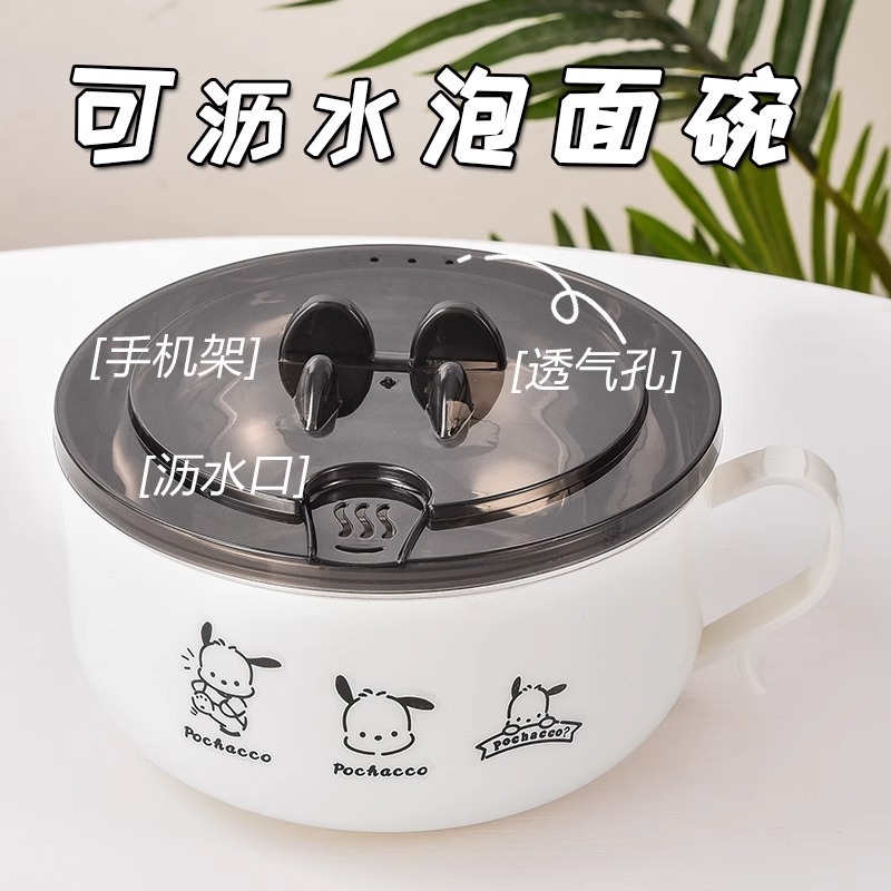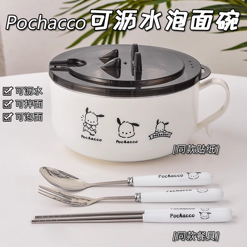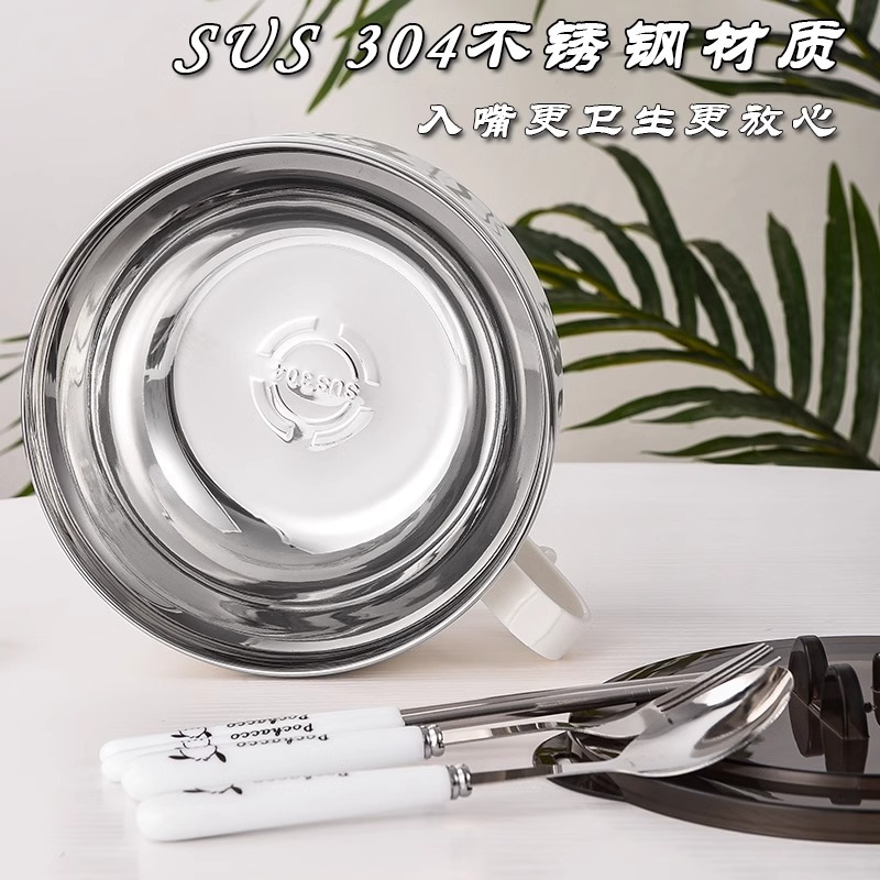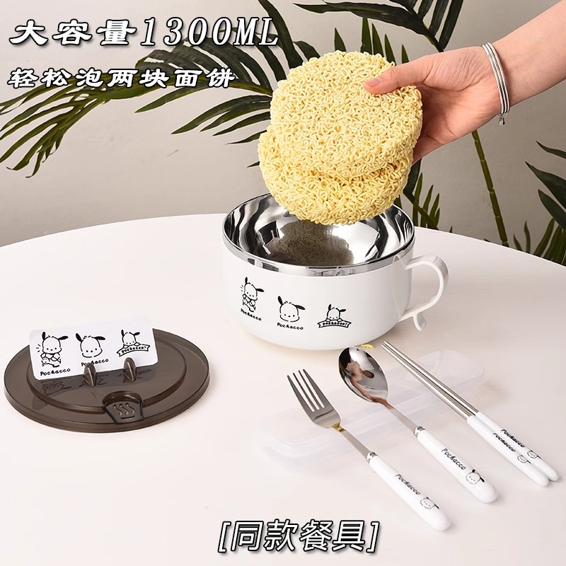 送餐具+同款贴纸!【可沥水,可拌面,可泡面!】超大容量1000ml 泡面碗带盖 学生宿舍沥水 304不锈钢方便面碗 防烫汤碗大容量饭盒-QB