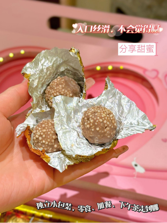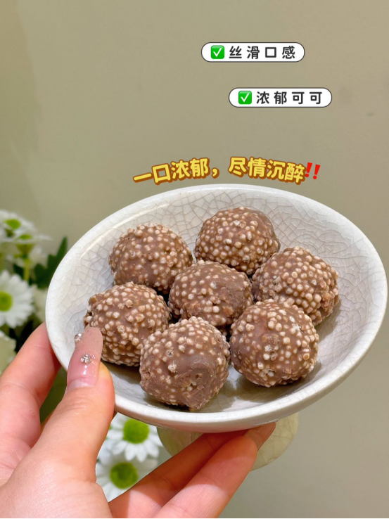细细品尝,感受它在口中慢慢融化 口感细腻、绵软丝滑好吃的同时完全不腻 一口一个,吃了直接爱上,根本停不下来🙊 吃甜食能让心情变得愉悦 尤其是颜值up的巧克力,没事来一块,幸福感爆棚~