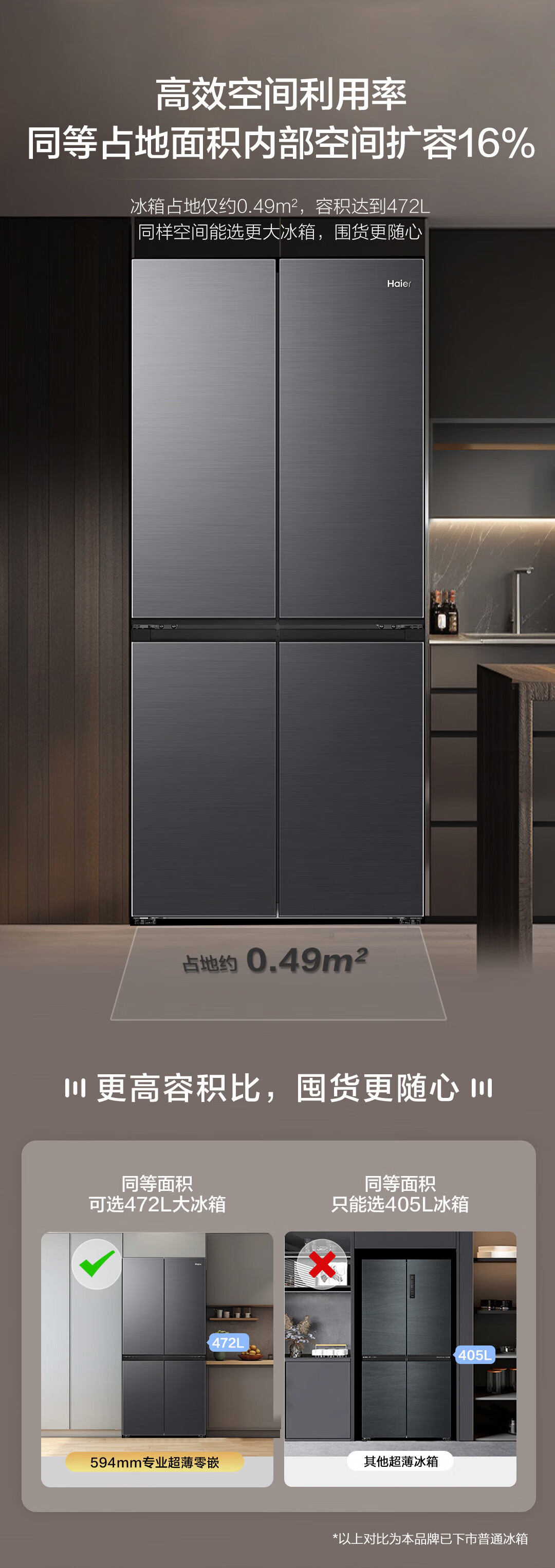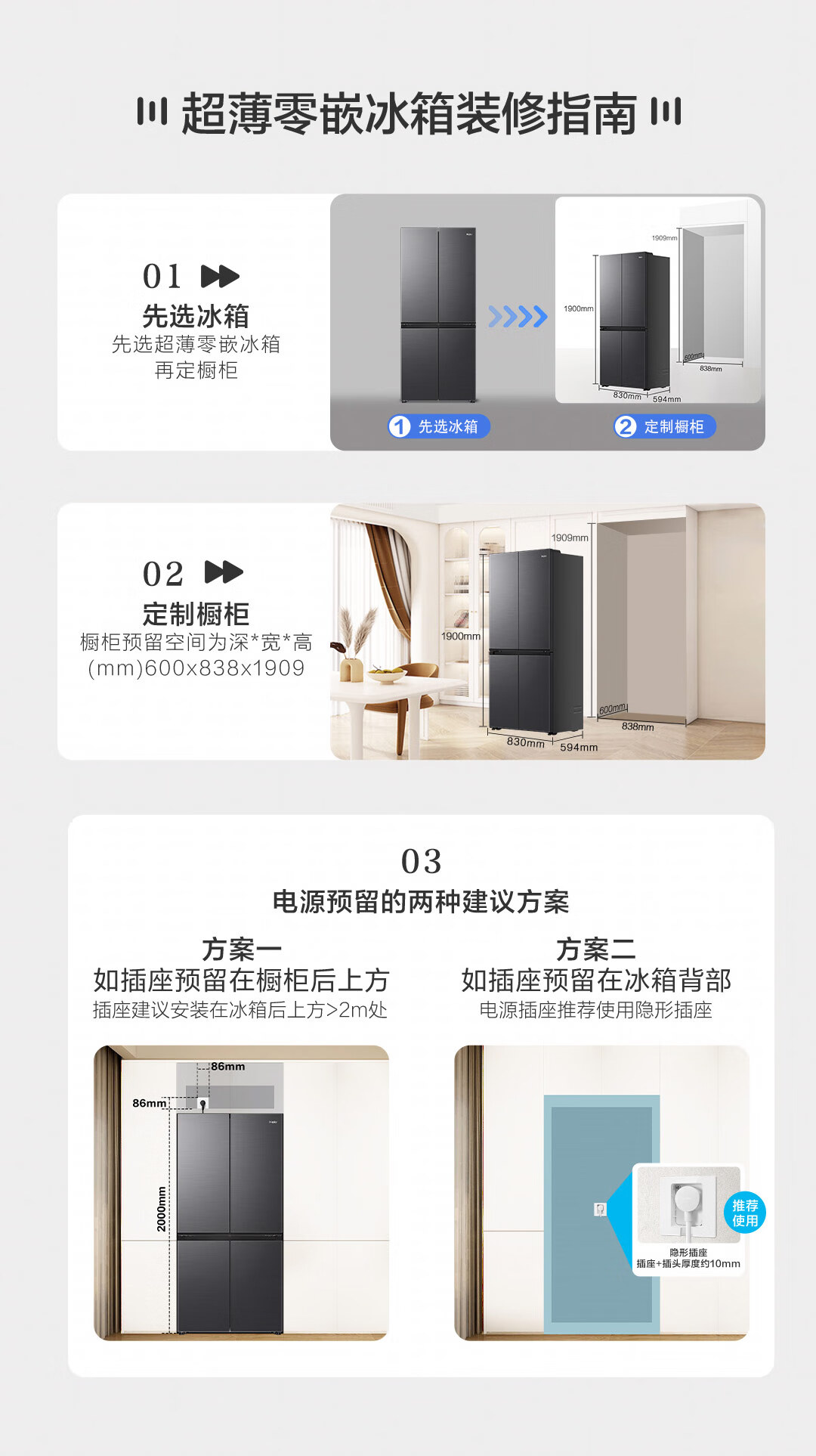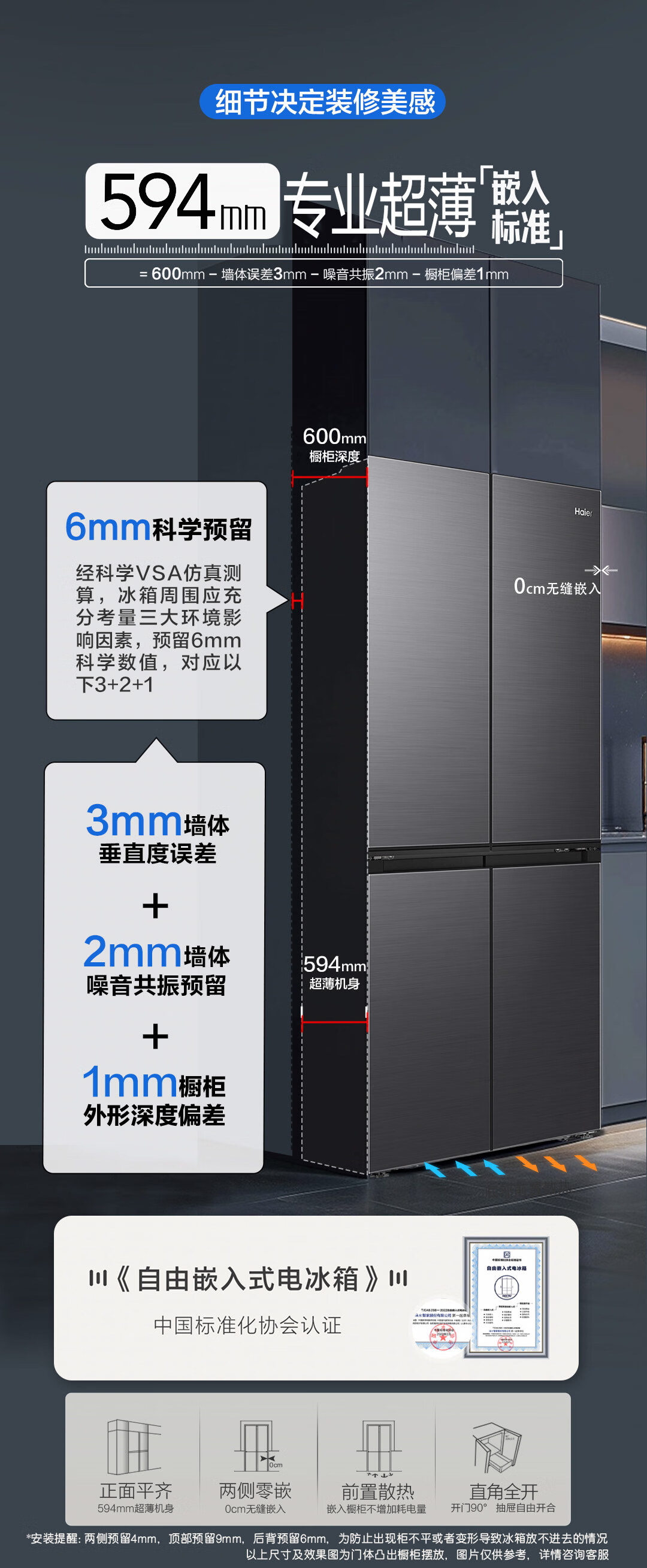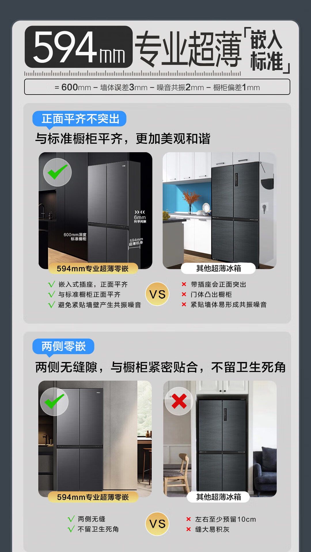 海尔(Haier)472升和景594mm专业超薄零嵌十字T型四开门家用电冰箱无霜除菌大容量嵌入式BCD-472WGHTDB9SYU1