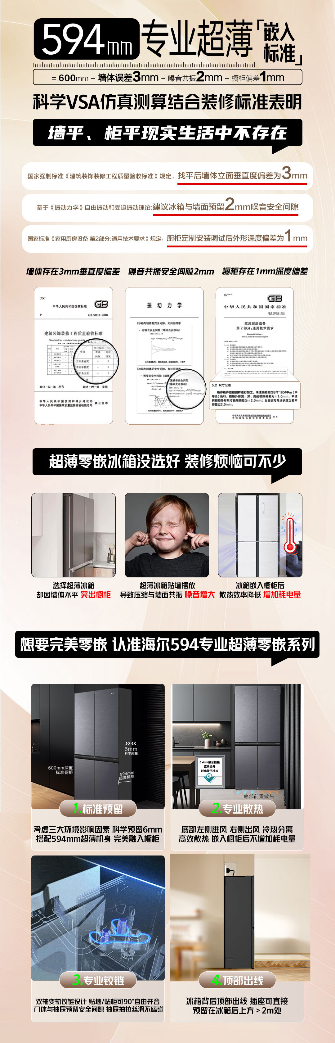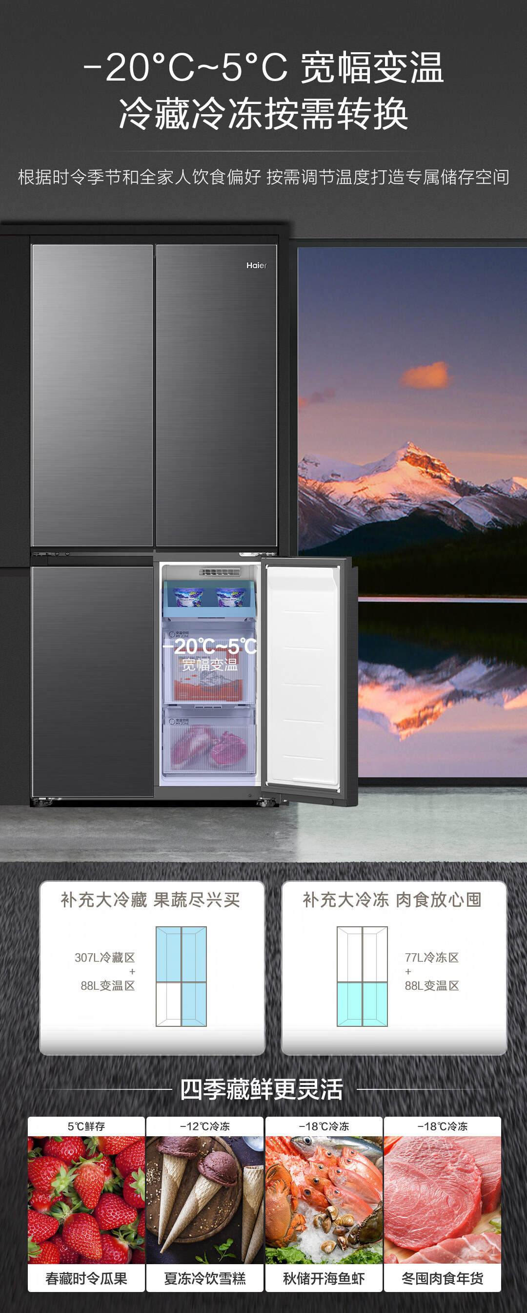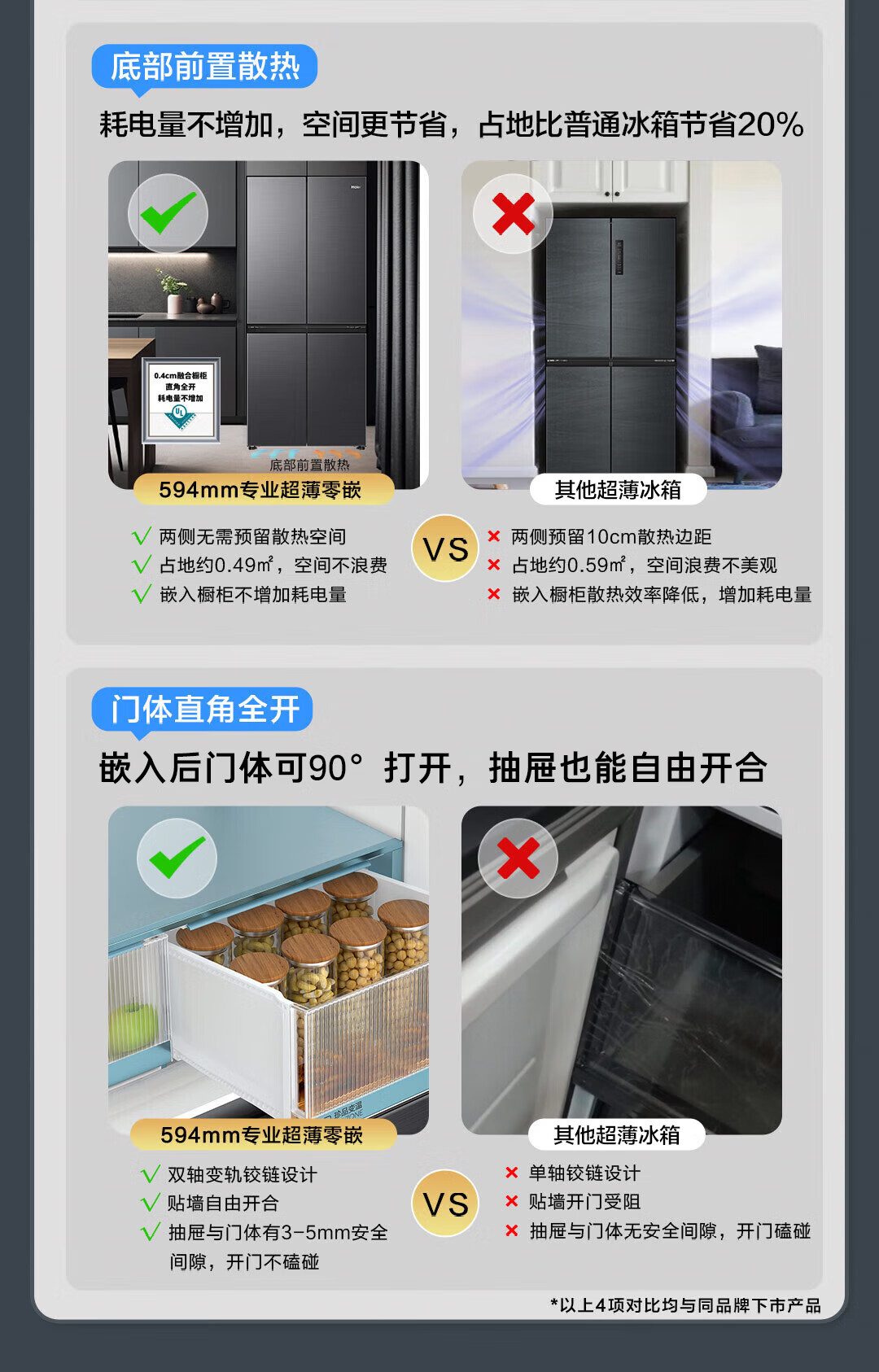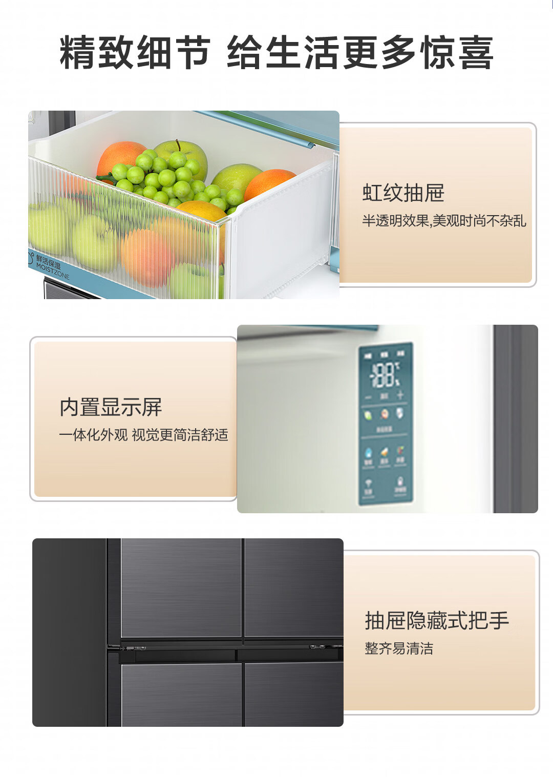 海尔(Haier)472升和景594mm专业超薄零嵌十字T型四开门家用电冰箱无霜除菌大容量嵌入式BCD-472WGHTDB9SYU1