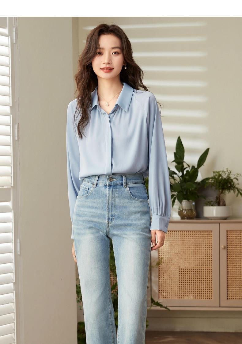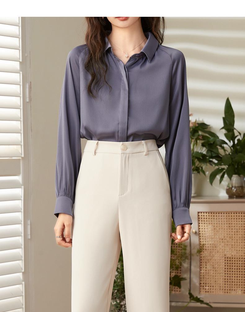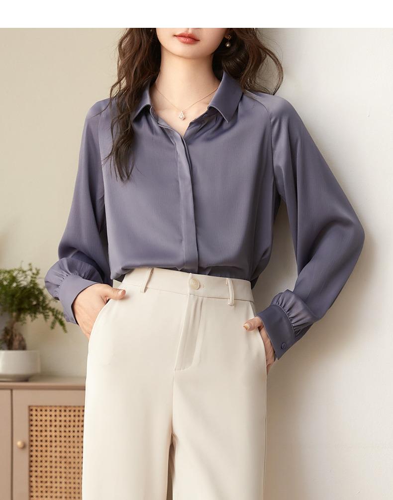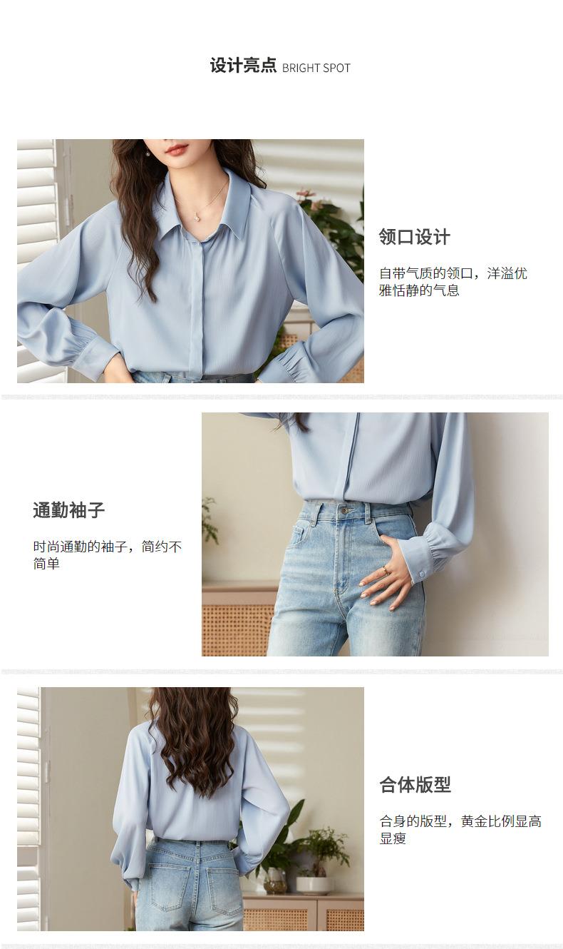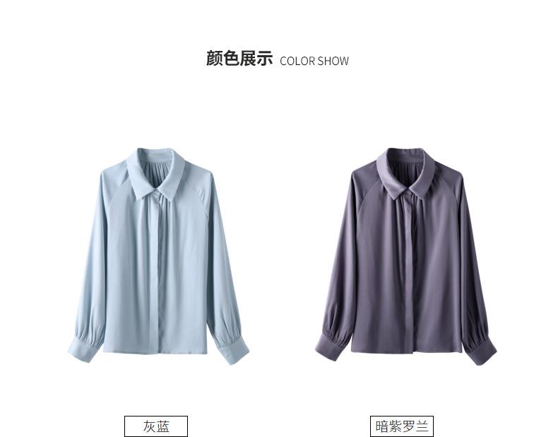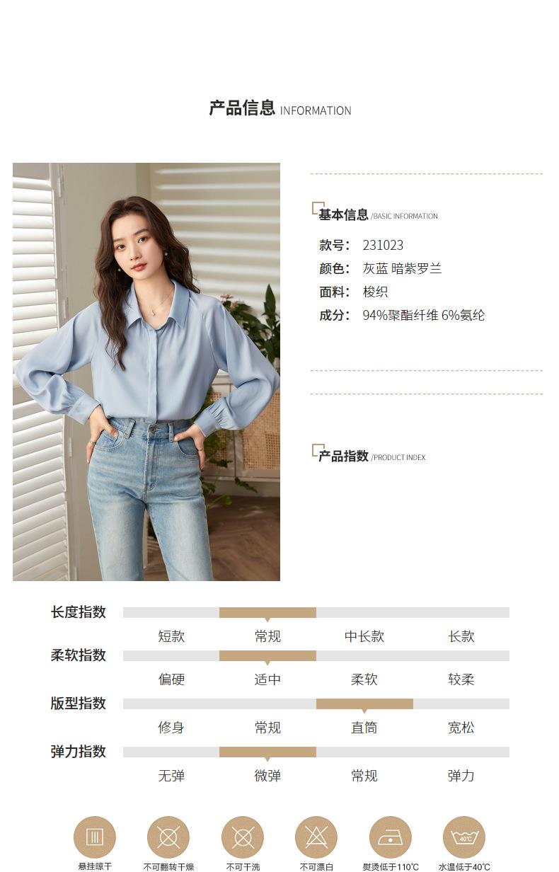 百姿 纯色翻领长袖衬衫2023春季新款直筒百搭暗扣职业装衬衣女