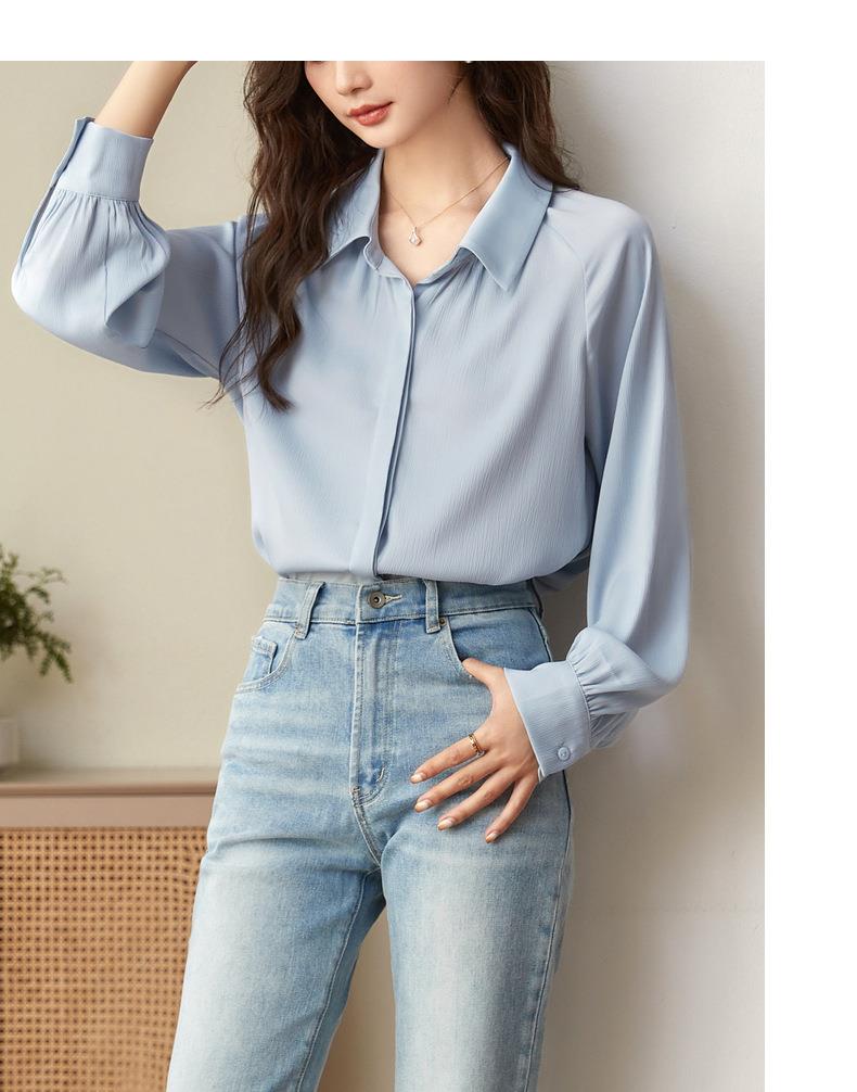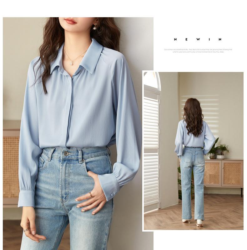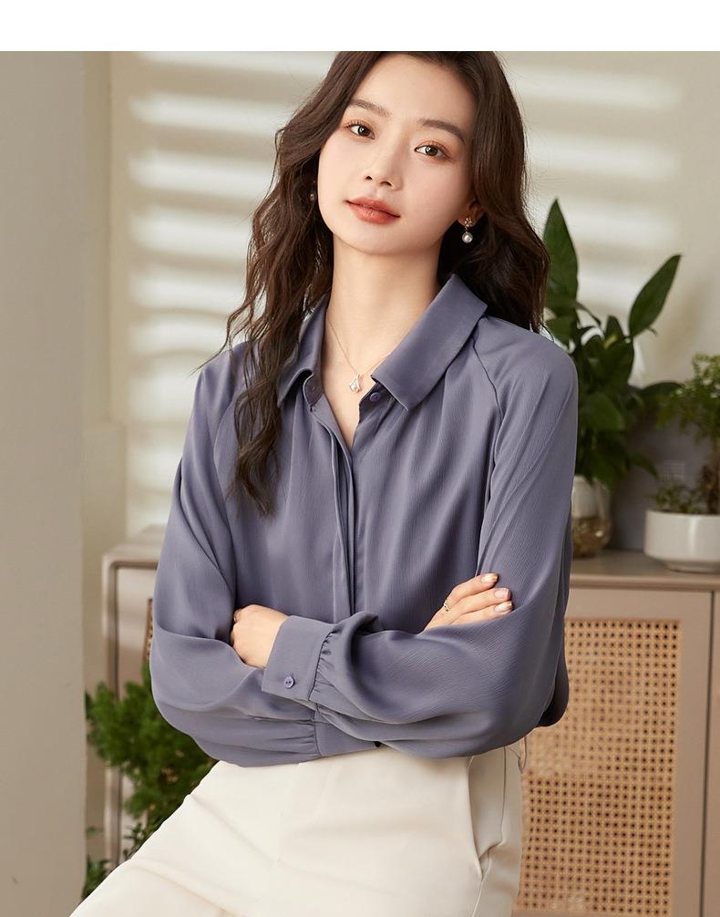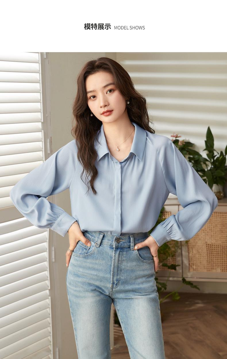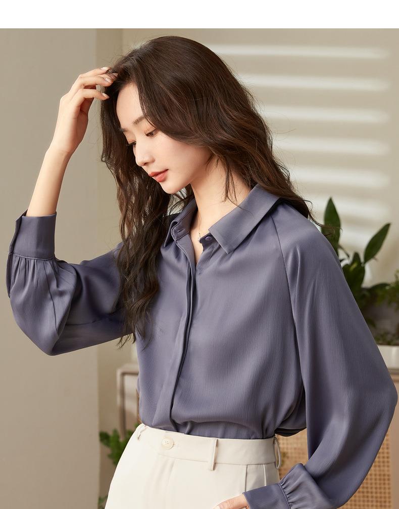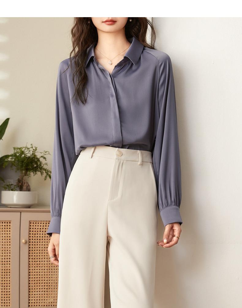 百姿 纯色翻领长袖衬衫2023春季新款直筒百搭暗扣职业装衬衣女