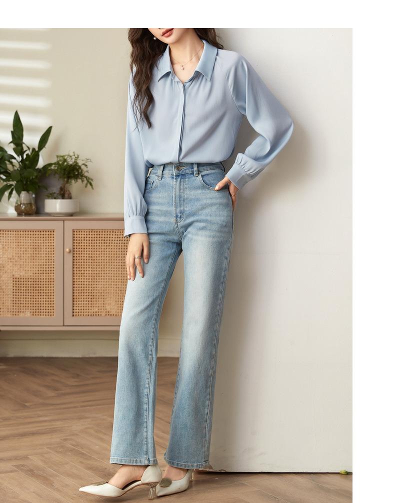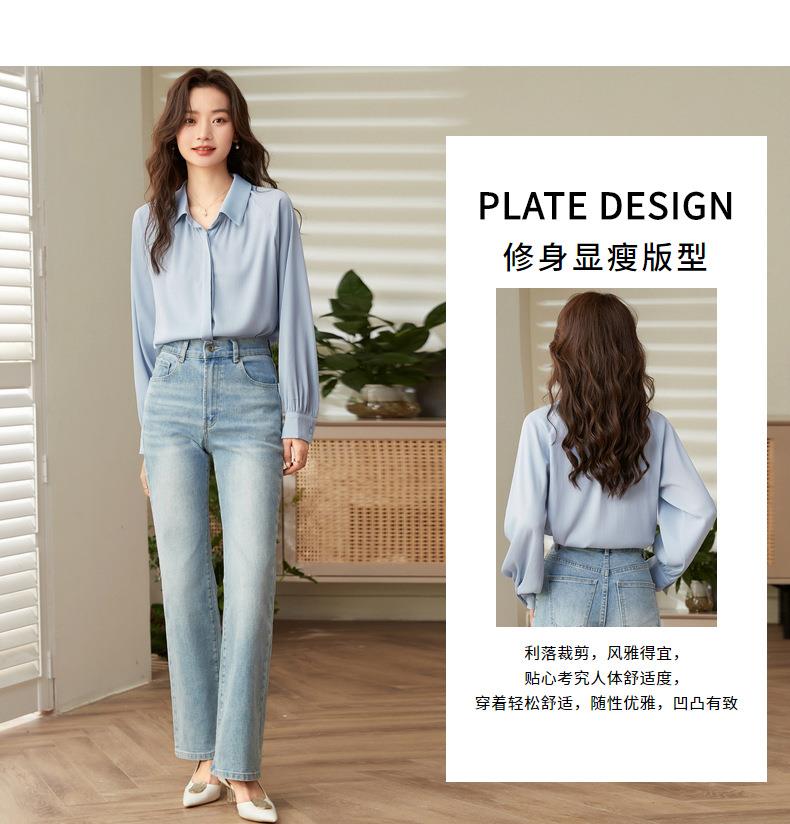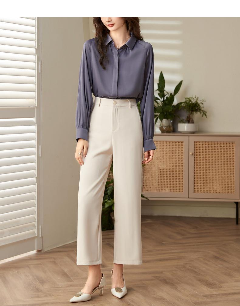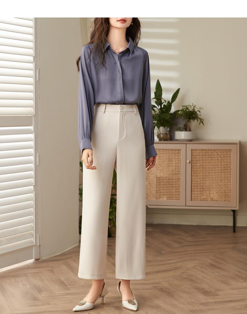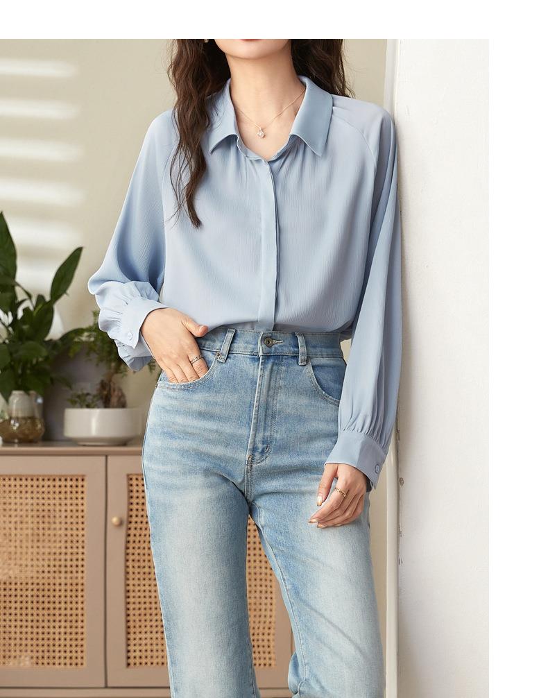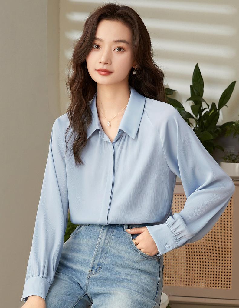 百姿 纯色翻领长袖衬衫2023春季新款直筒百搭暗扣职业装衬衣女
