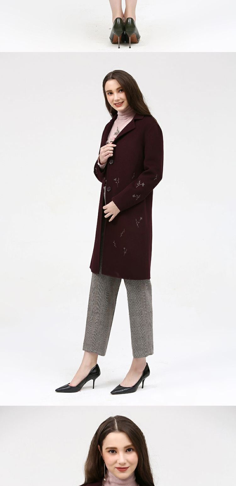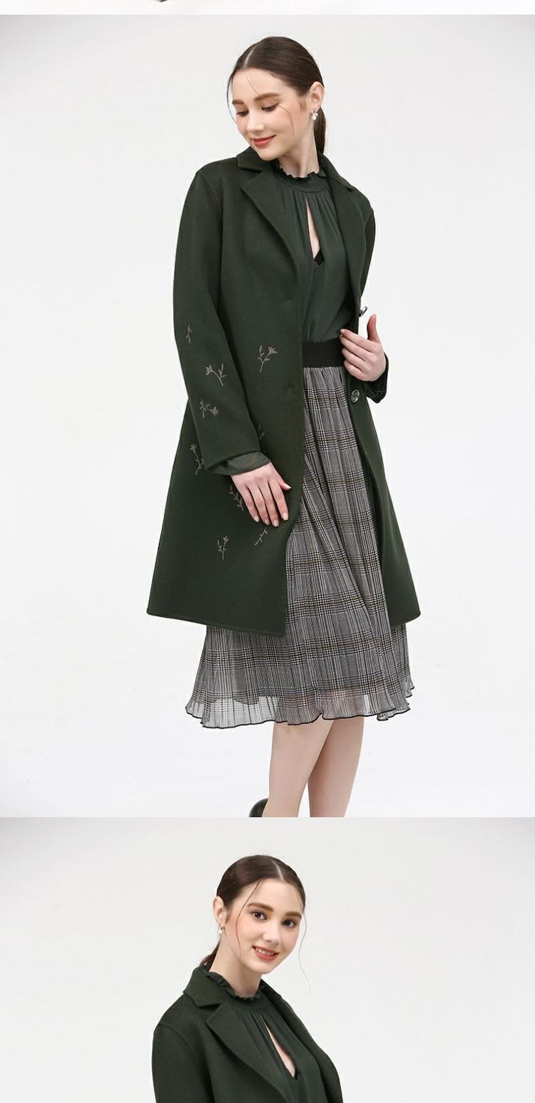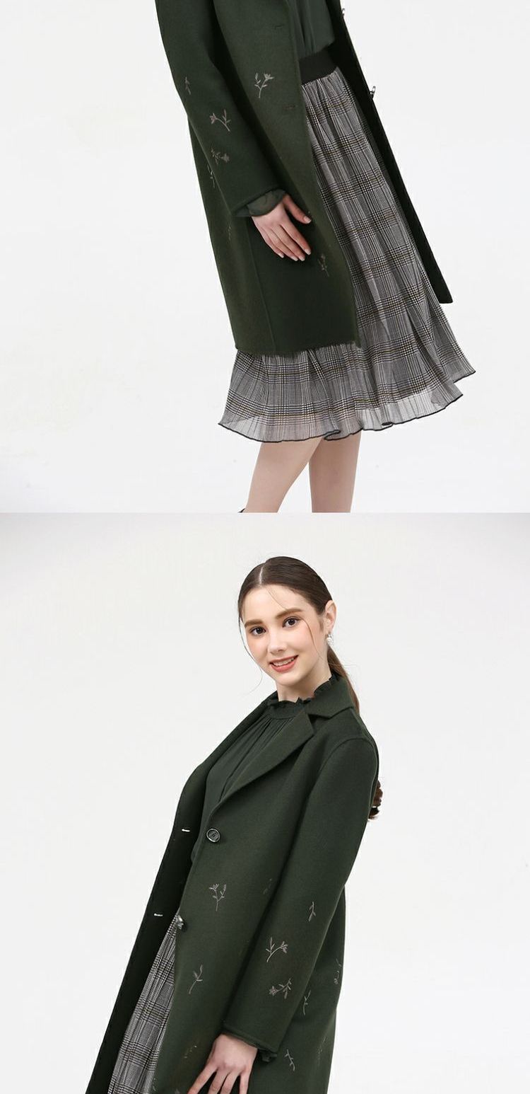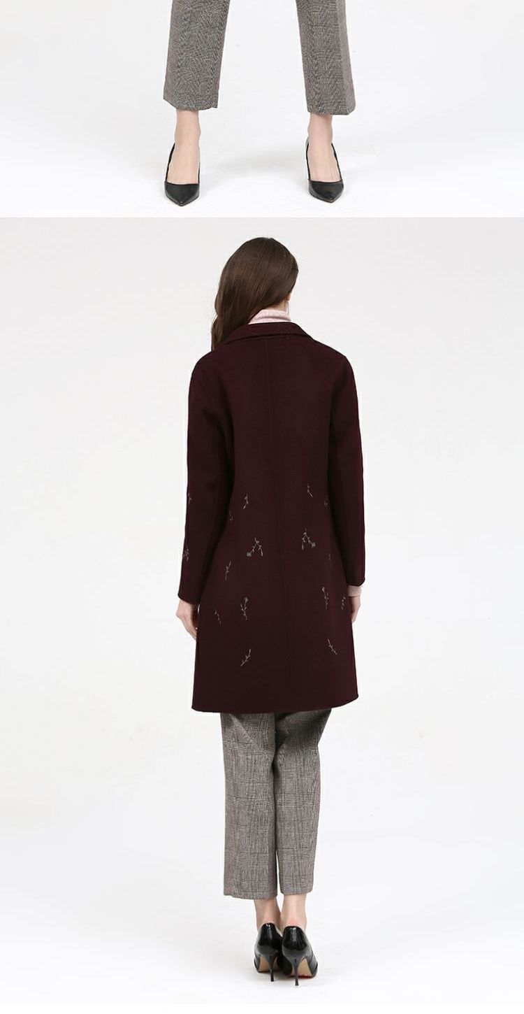 佐尔美新品冬季女装纯色百搭修身显瘦双面呢羊毛大衣外套E74SM16