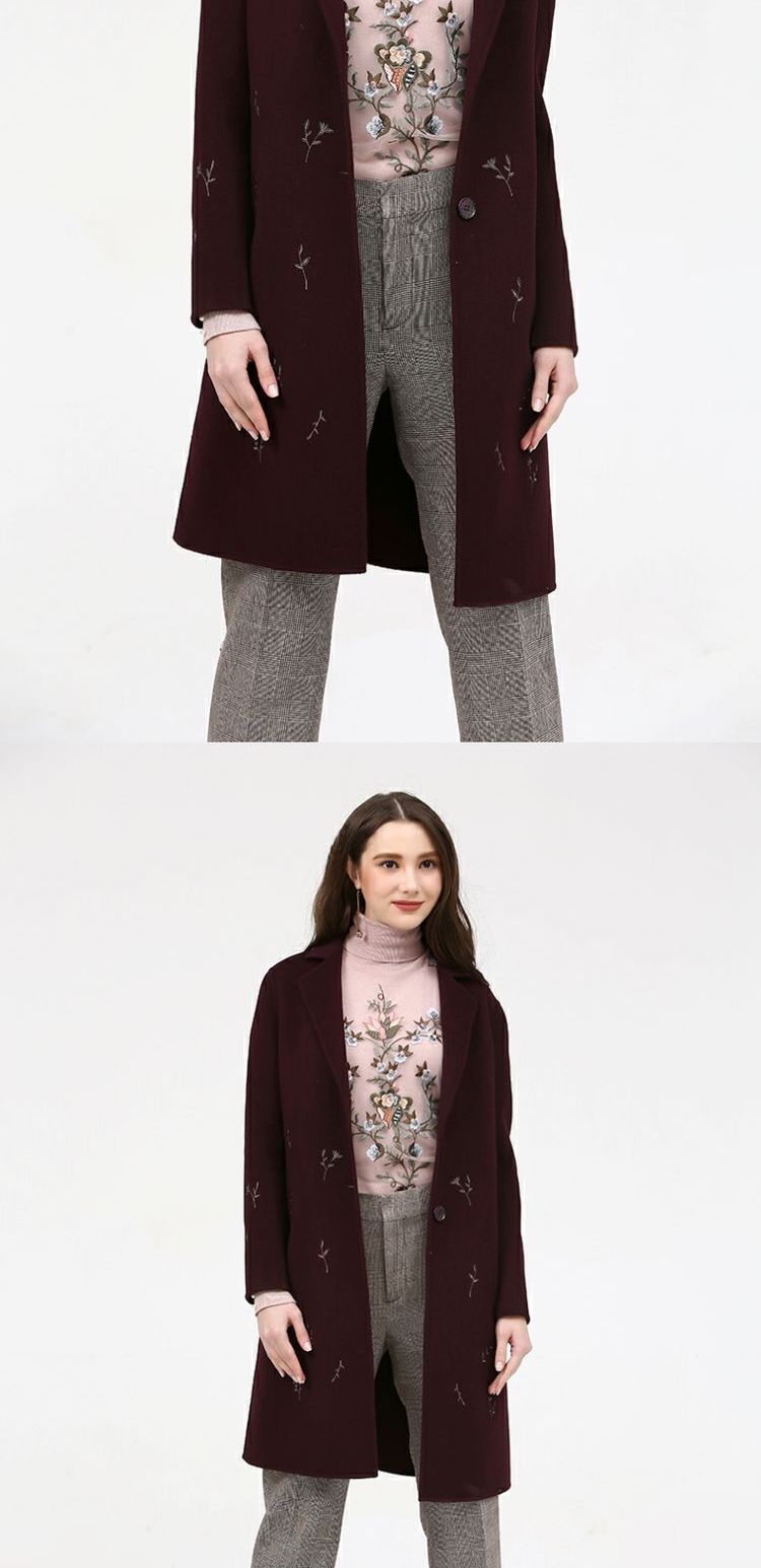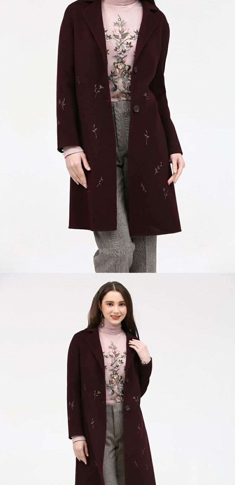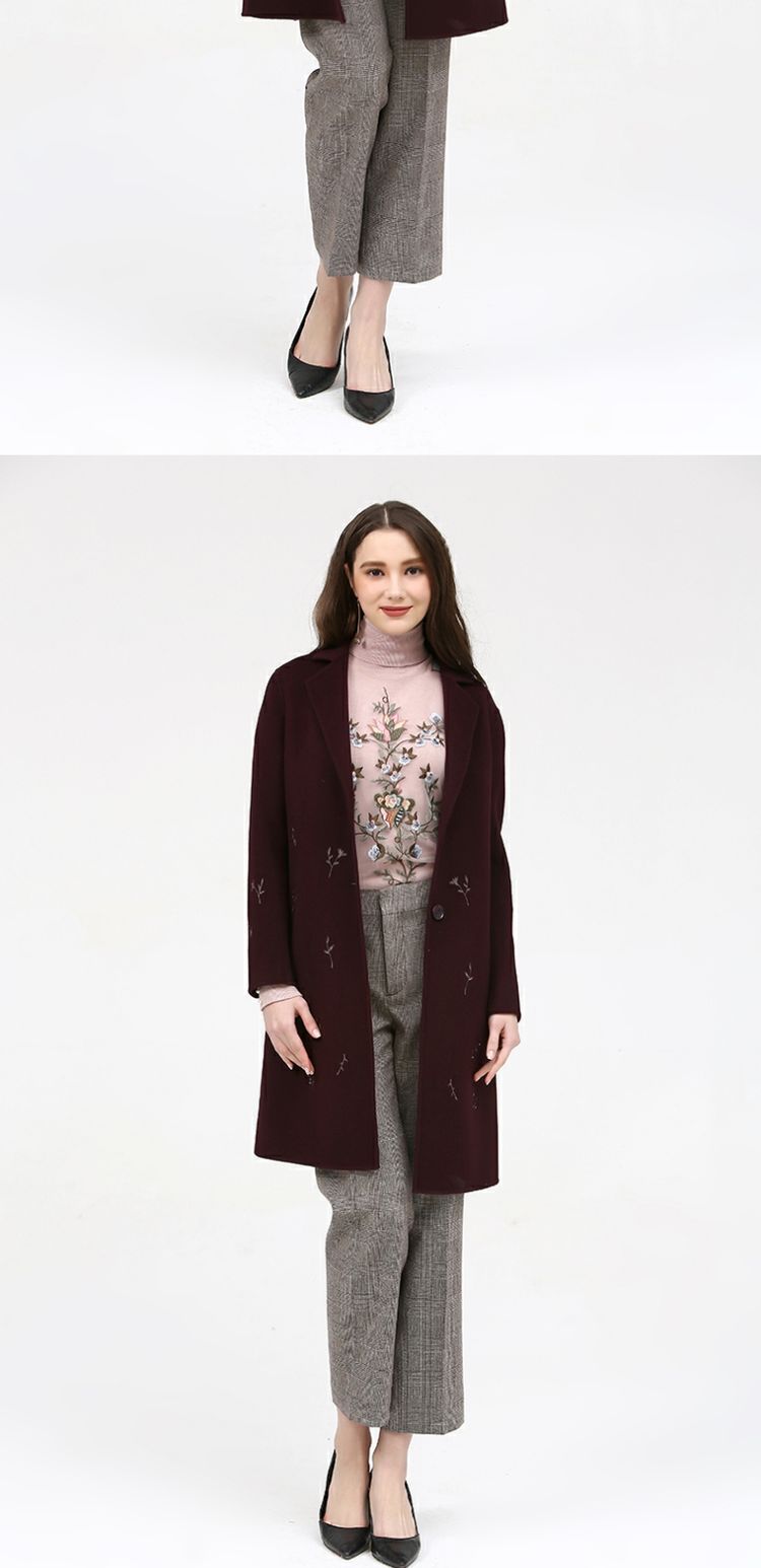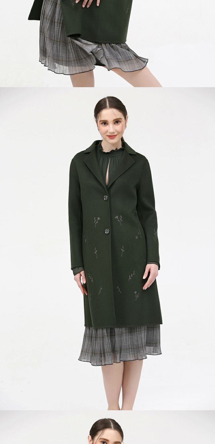 佐尔美新品冬季女装纯色百搭修身显瘦双面呢羊毛大衣外套E74SM16
