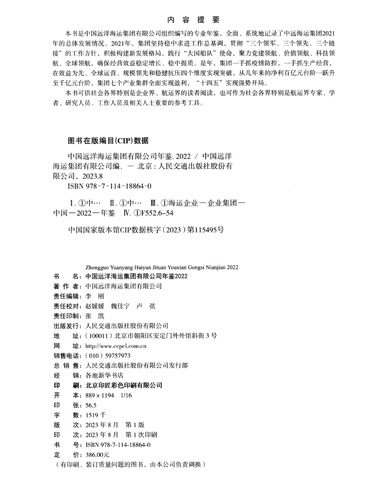 书名:中国远洋海运集团有限公司年鉴2022