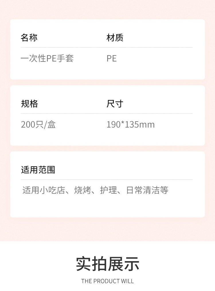 餐饮透明厨房塑料薄膜盒装加厚pe食品级专用抽取式一次性手套家用