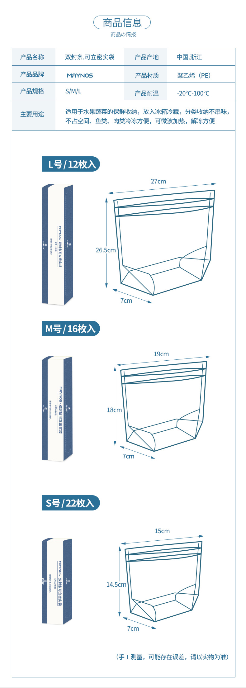 双封条可立密实袋‼️升级加厚12丝✅双封条✅可加热✅盒装抽取✅重复使用✅S/M/L3⃣种型号📣满足日常分类所需!