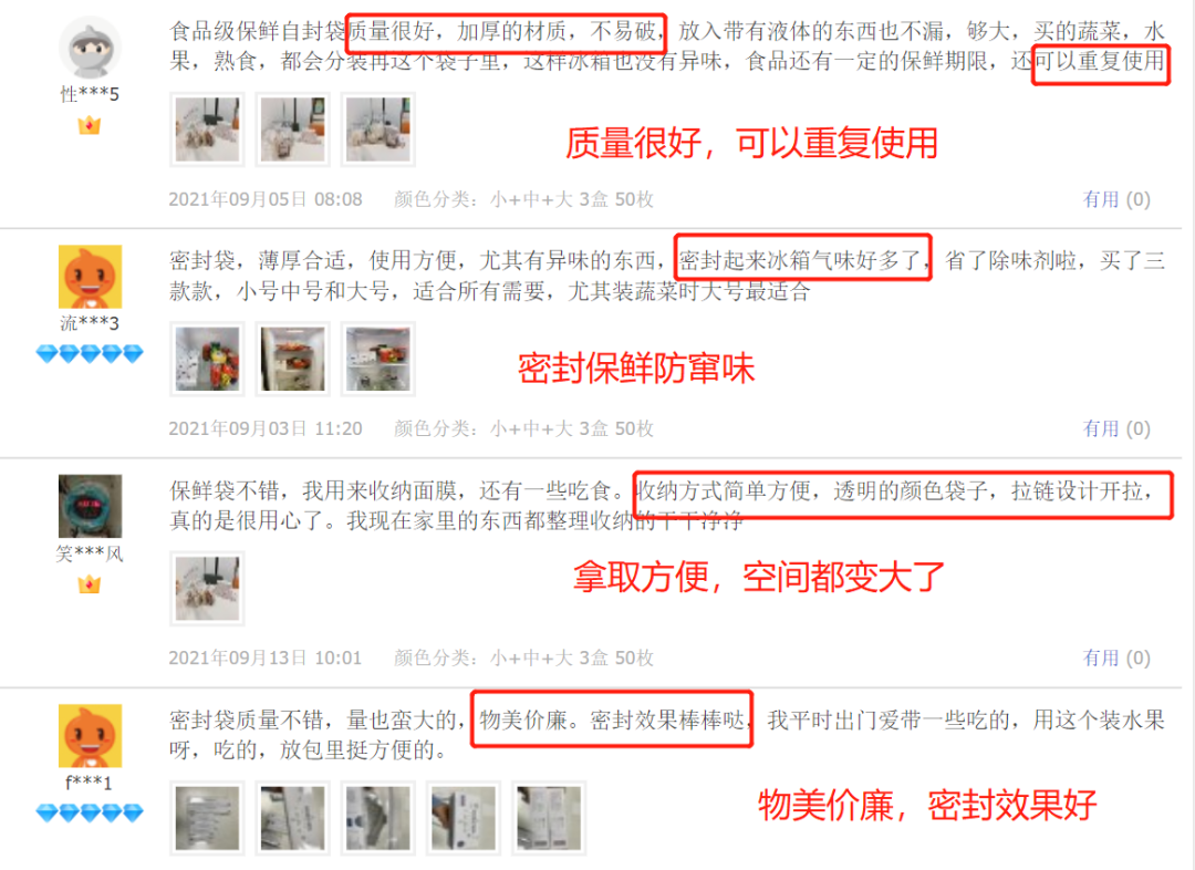 “密封保鲜防窜味”、“拿取方便,冰箱空间都变大了”、“质量好,密封性超强”、“可以重复使用”……