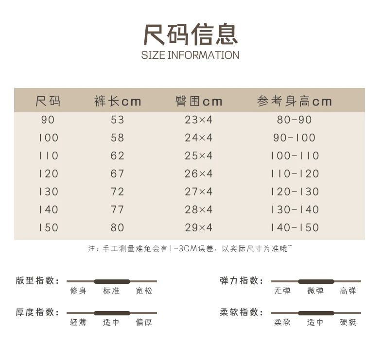 尺码给大家做了90-150尺码,按照平时穿的尺码来拍就行,偏胖的宝贝可以拍大一码。