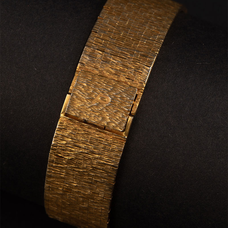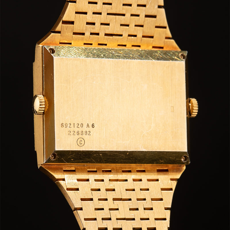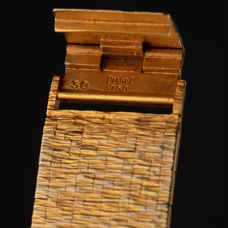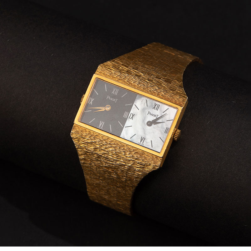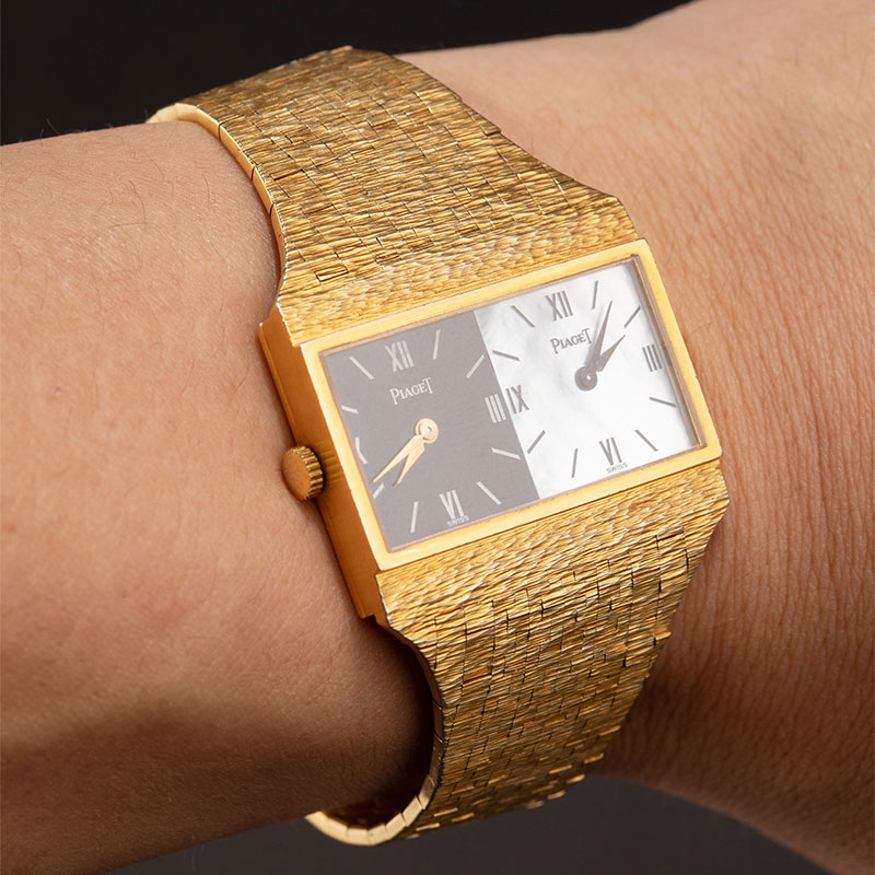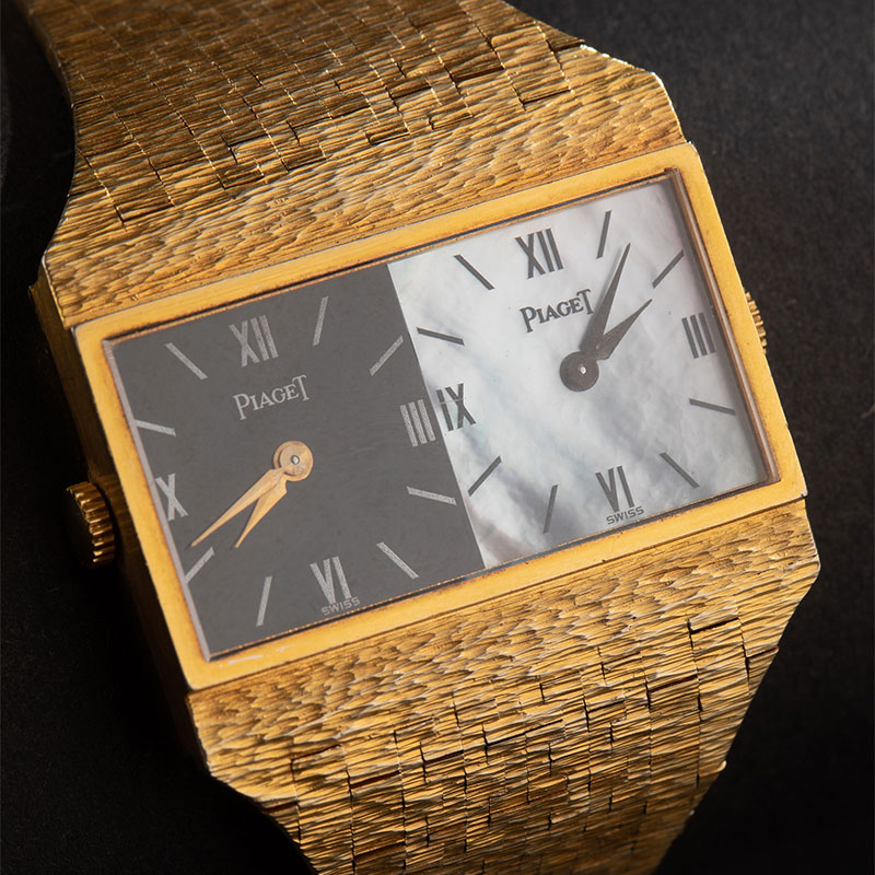 1974年瑞士出品18K黄金宫廷式图腾表带缟玛瑙母贝黑白表盘女士腕表
