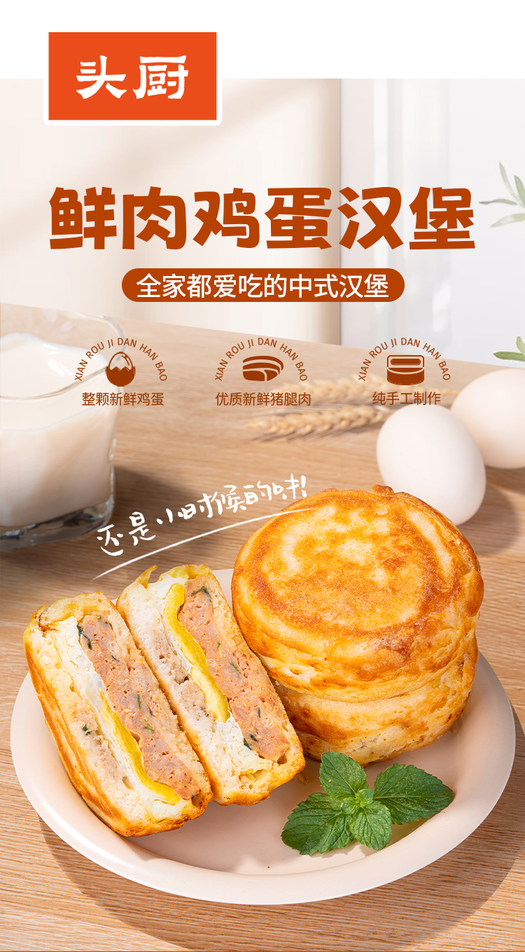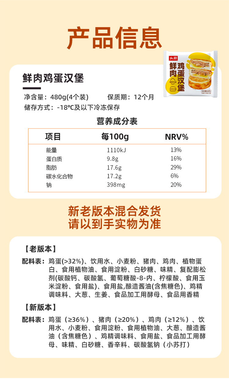 《选项17:鲜肉鸡蛋汉堡480g*1袋装》480g/4个/袋-【保质期】360天