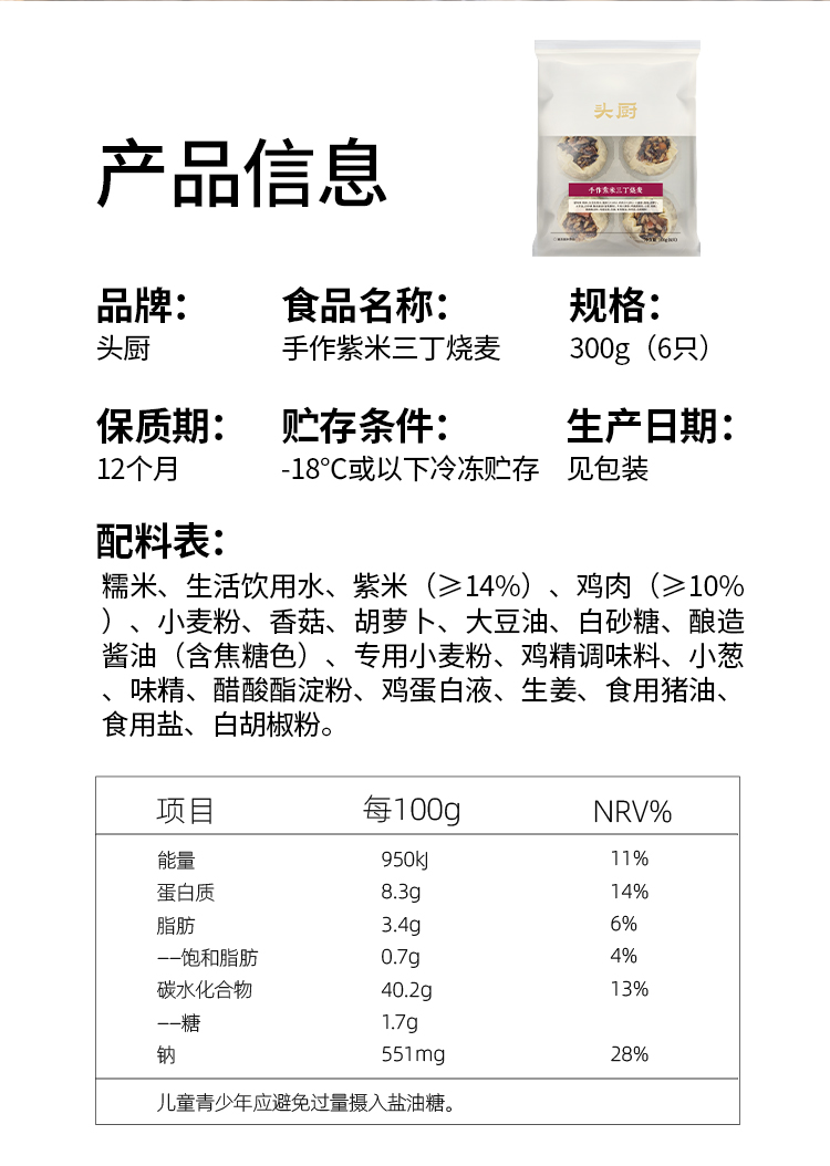 《选项14:手作紫米三丁烧麦300g*1袋装》300g/6个/袋-【保质期】360天