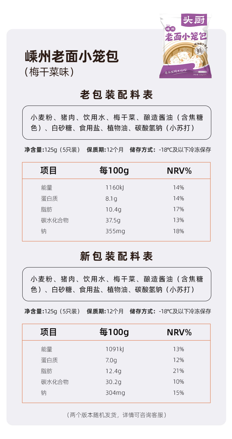 《选项2:老面小笼包(梅干菜味)125g*2袋装》125g/5只/袋-【保质期】360天