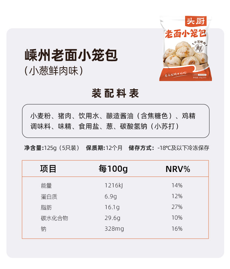 《选项1:老面小笼包(小葱鲜肉味)125g*2袋装》125g/5只/袋 -【保质期】360天