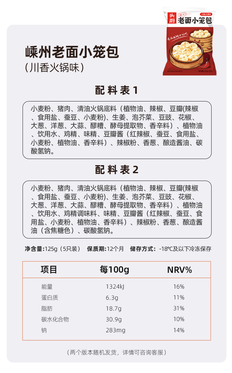《选项3:老面小笼包(川香火锅味)125g*2袋装》125g/5只/袋-【保质期】360天