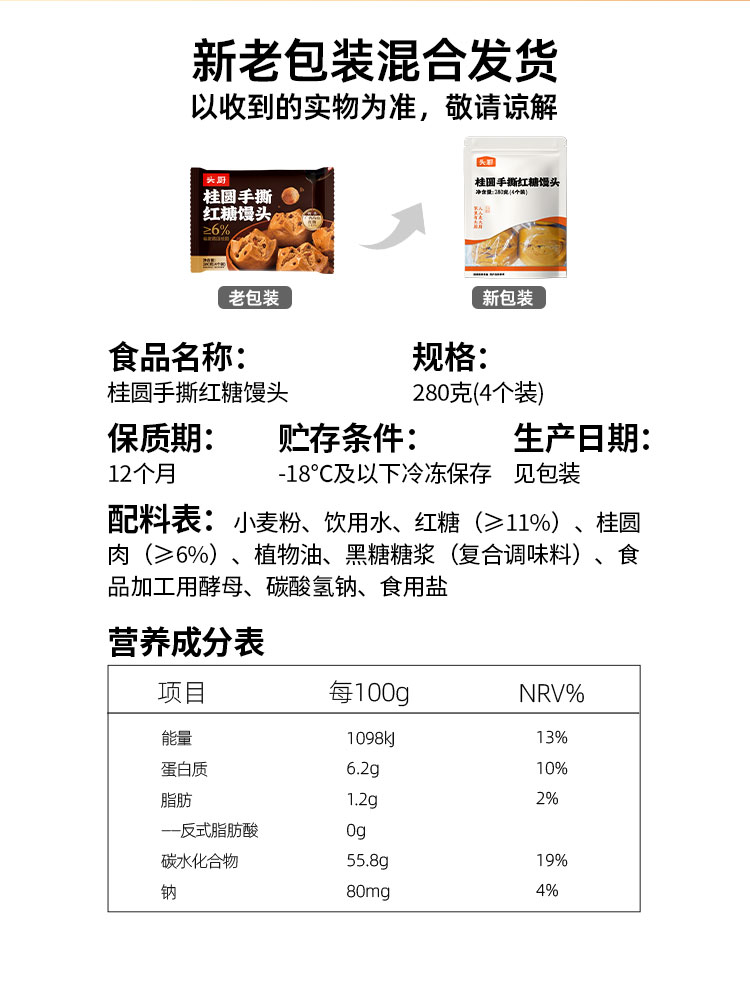 《选项23:桂圆手撕红糖馒头280g*1袋装》280g/4个/袋-【保质期】360天